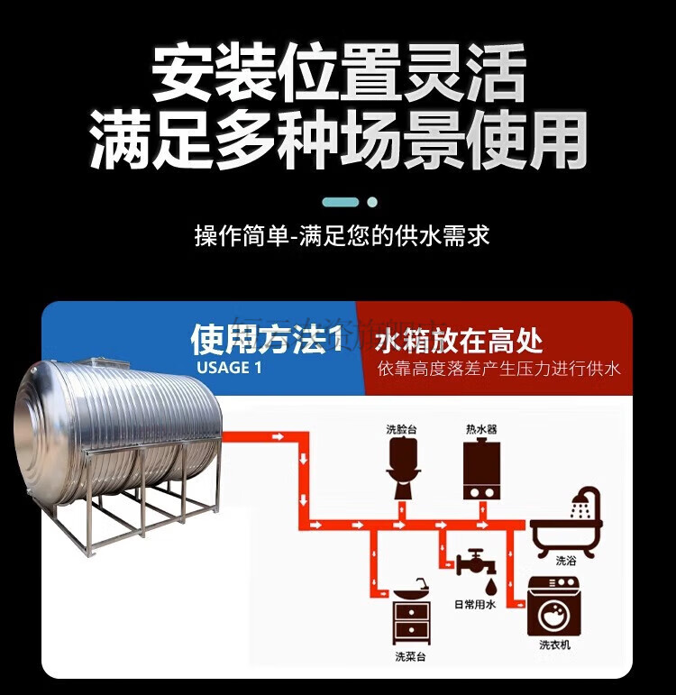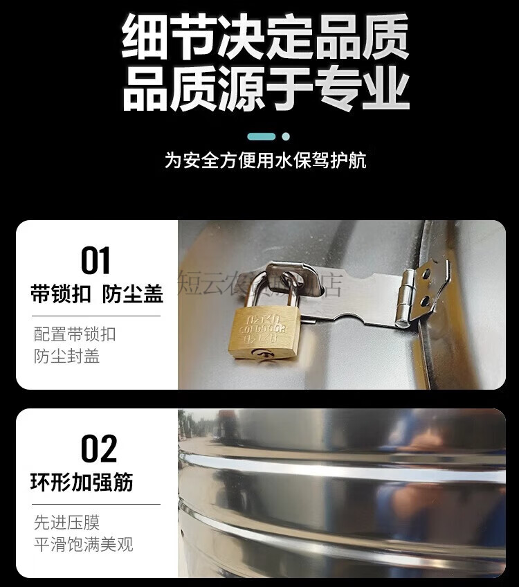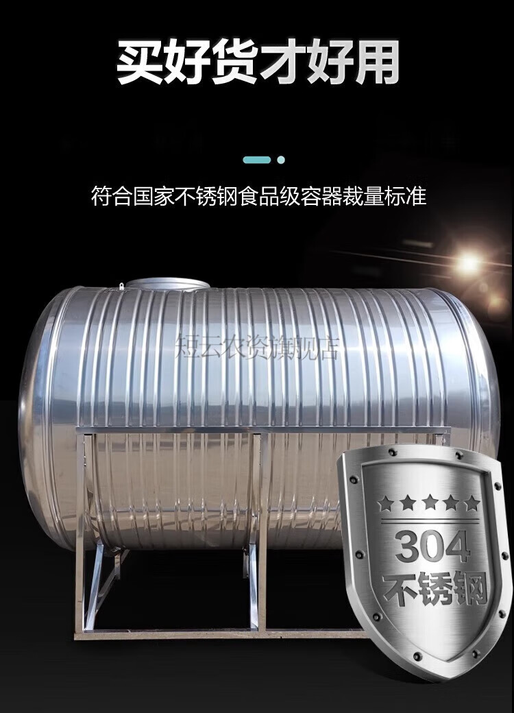 Short cloud 304 stainless steel water tank horizontal water storage tank water tower home flat thickened solar roof kitchen water storage bucket 0.3 tons horizontal (extra thick