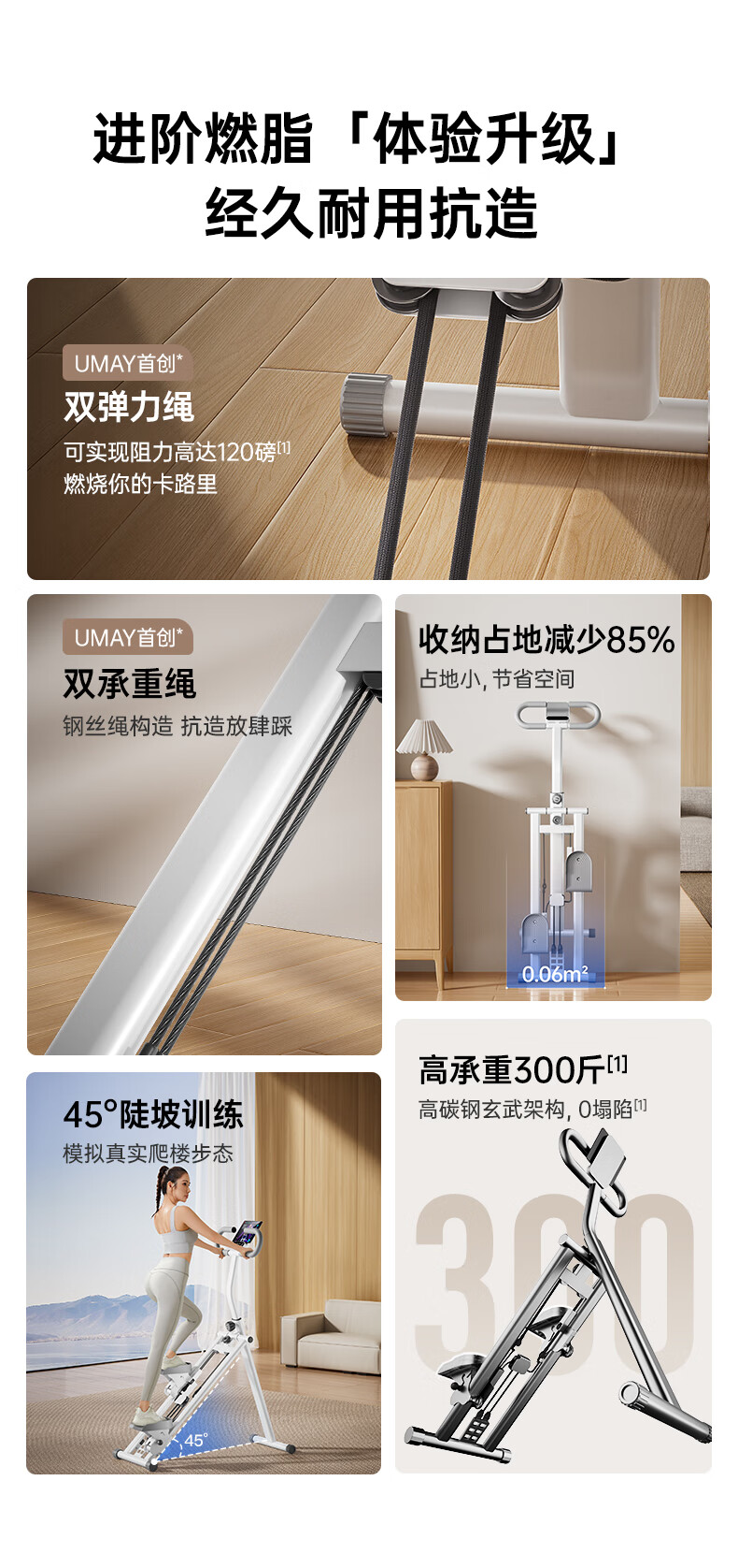 YOU MEI multifunctional stair climber, home stepper, stair climber, mountain climber, sports and fitness equipment for in-situ running, new second generation upgraded resistance adjustment model | croissant handrails | enlarged and thickened steel pipe