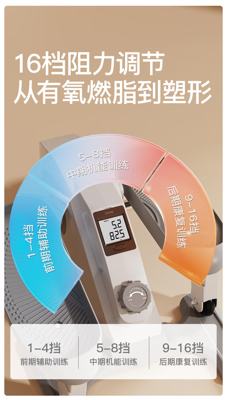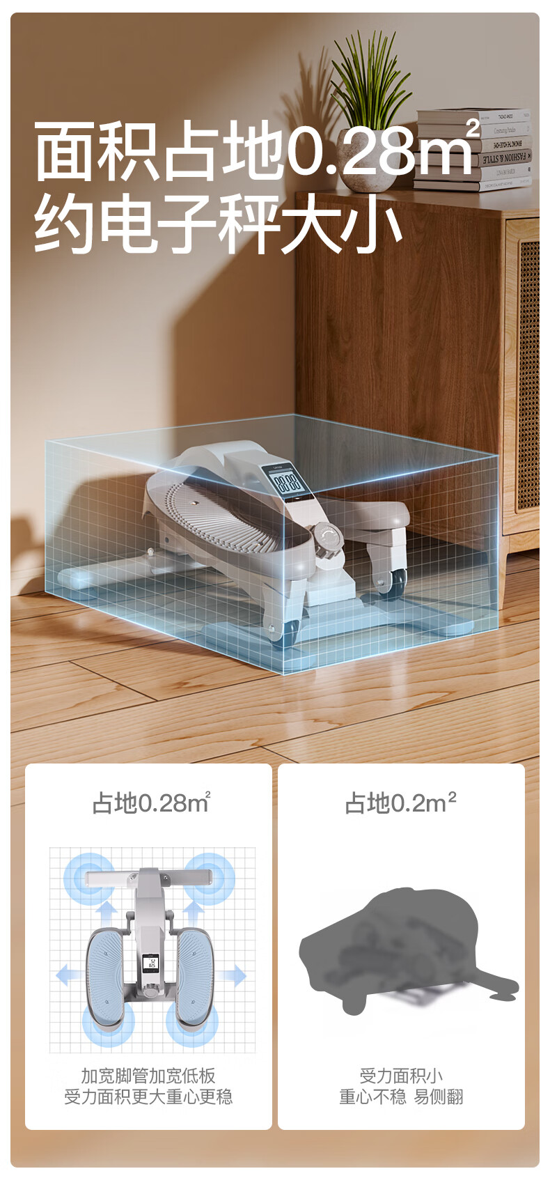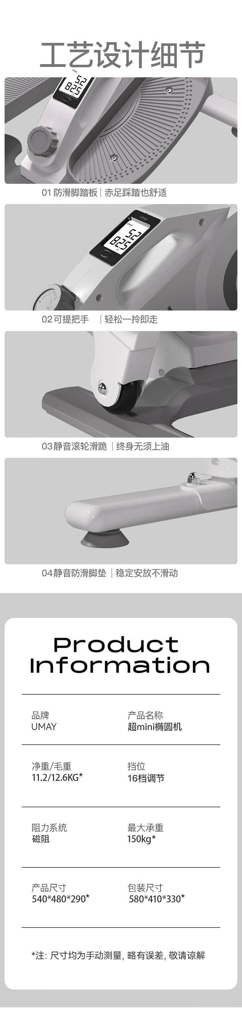 YOU MEI Mini Elliptical Machine Home Fitness Small Multi-Function Silent Walking Machine Space Walking Treadmill C3 Moonlight White Tension Rope Model丨Super Silent丨16-level Magnetic Control Resistance Adjustment丨Fat Burning Tutorial