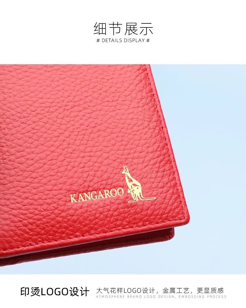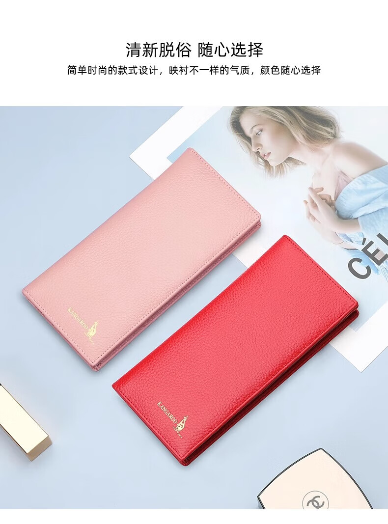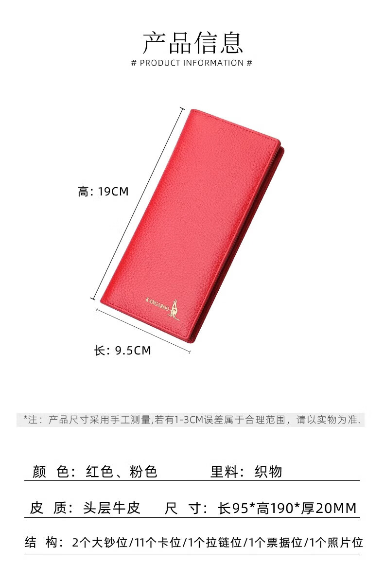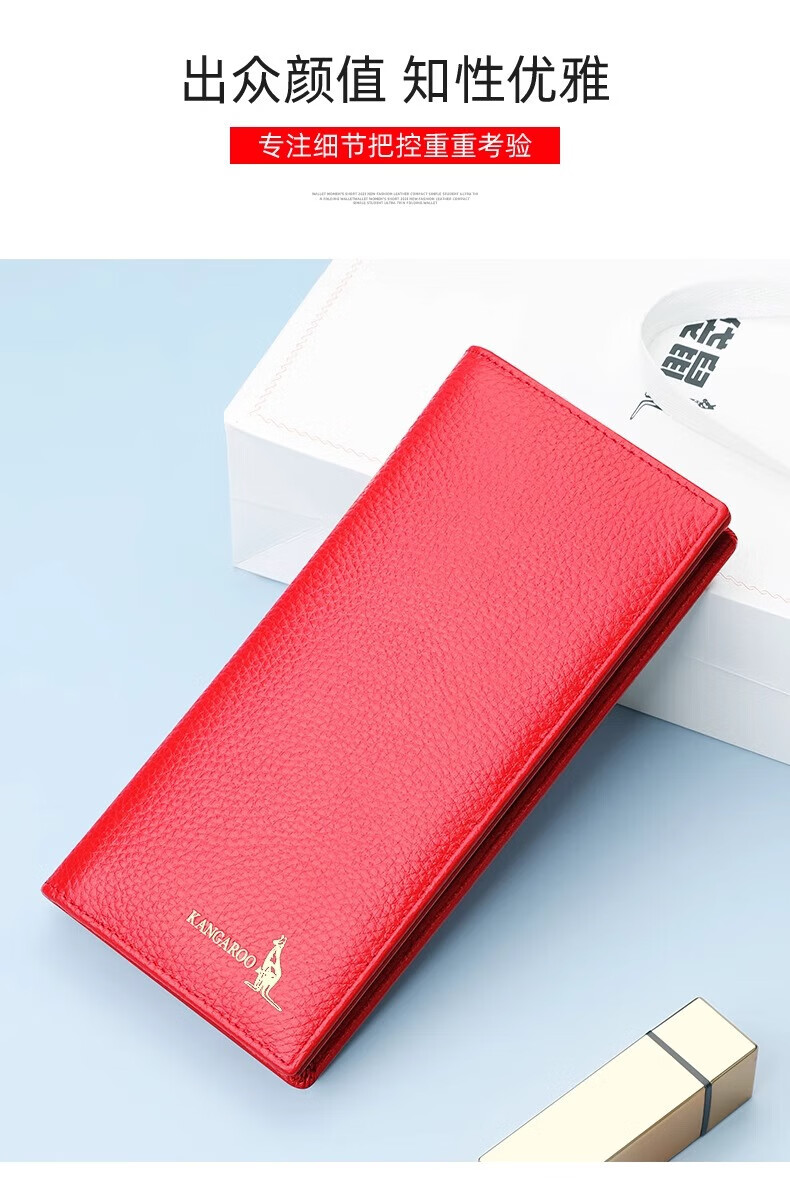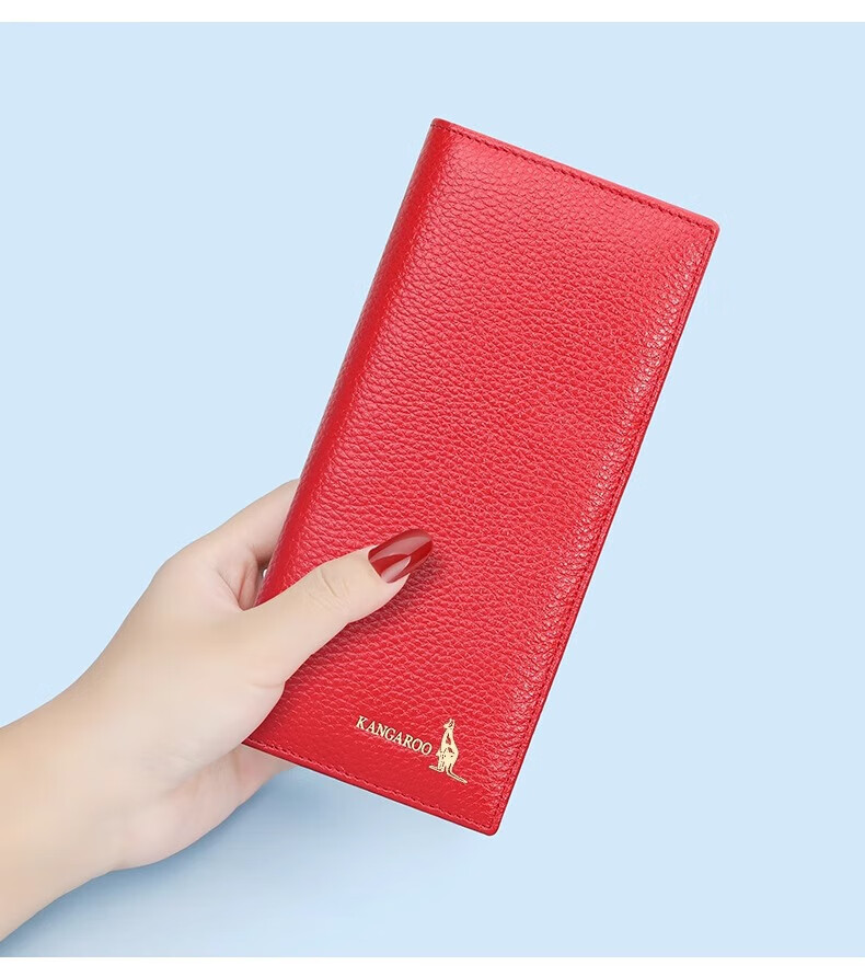 Kangaroo (KANGAROO) 2025 New Women's Genuine Leather Long Wallet Clutch Small Bag Clutch Women's Wallet Wallet Black-Thick Style