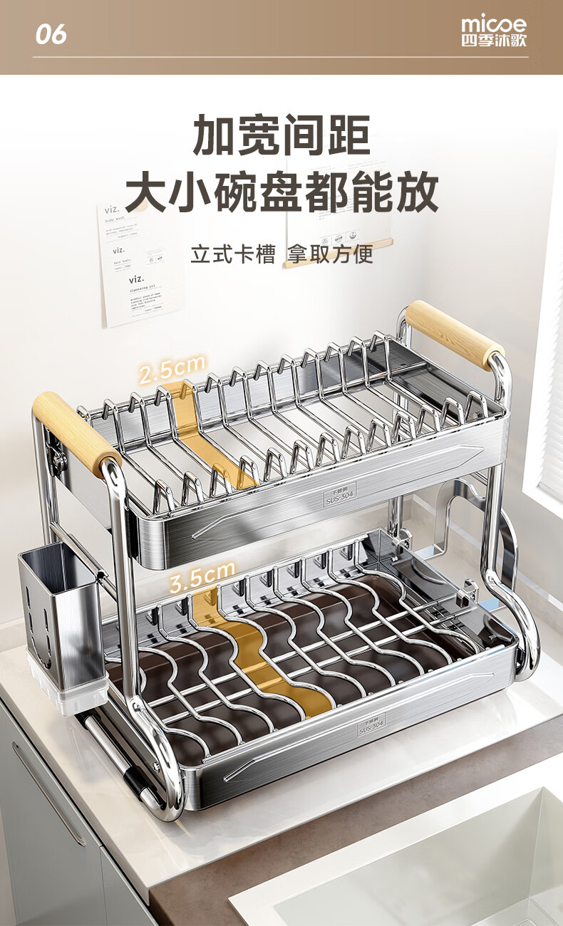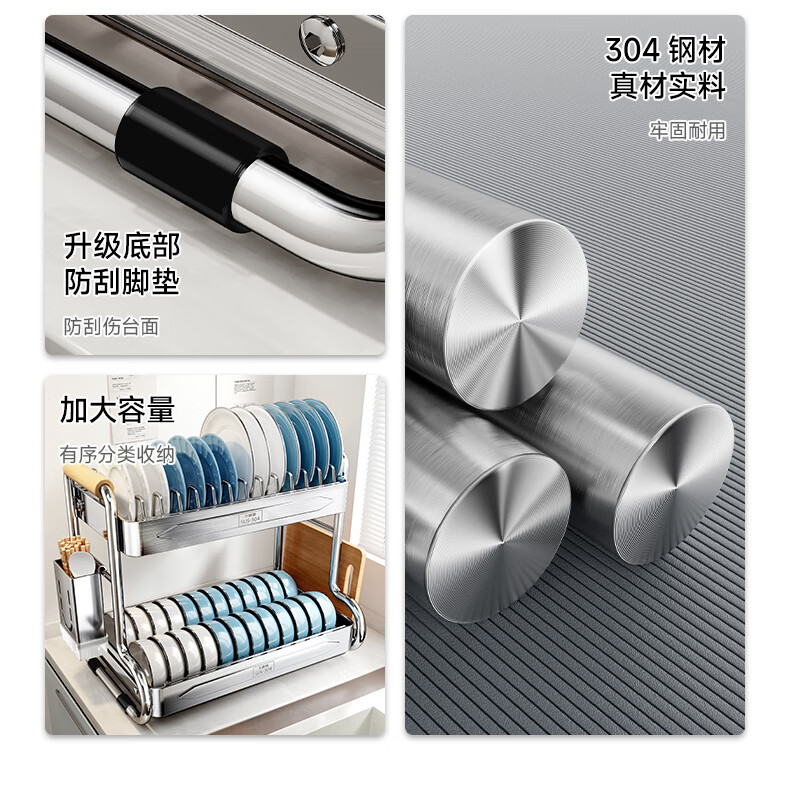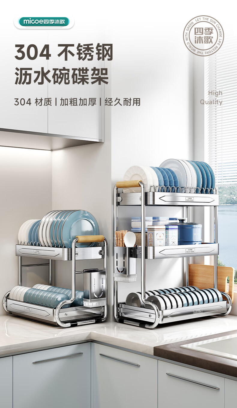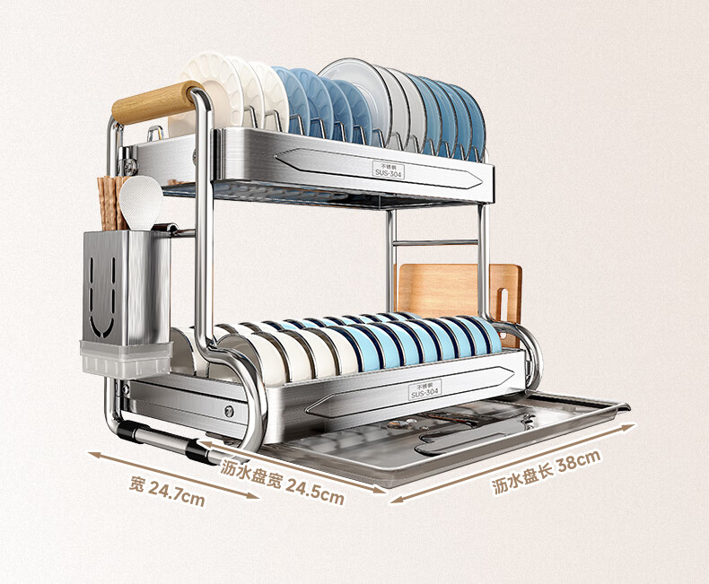Four Seasons Muge kitchen rack 304 stainless steel dish rack drain rack for dishes and chopsticks storage cabinet box countertop utensils 304 stainless steel 2 layers 43 long - fully equipped