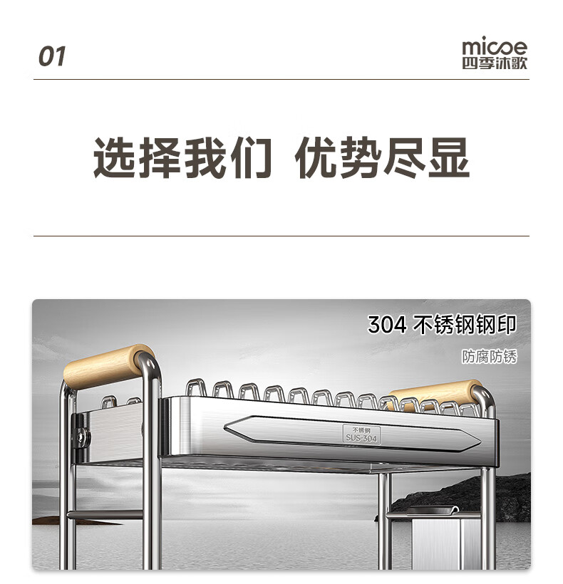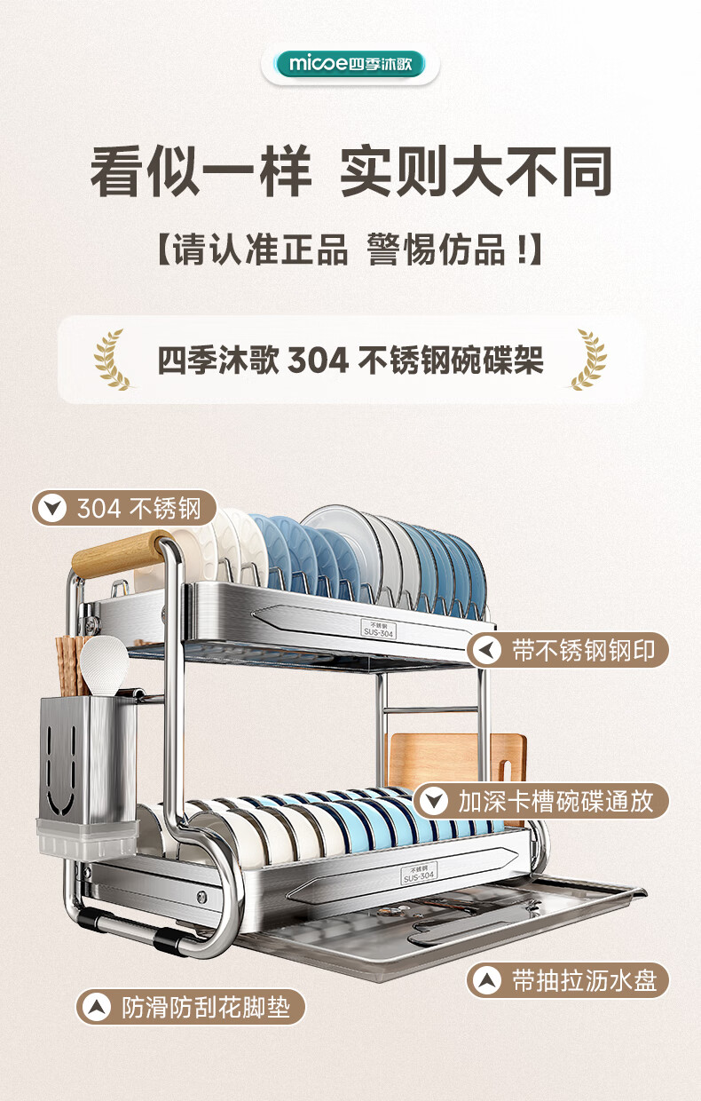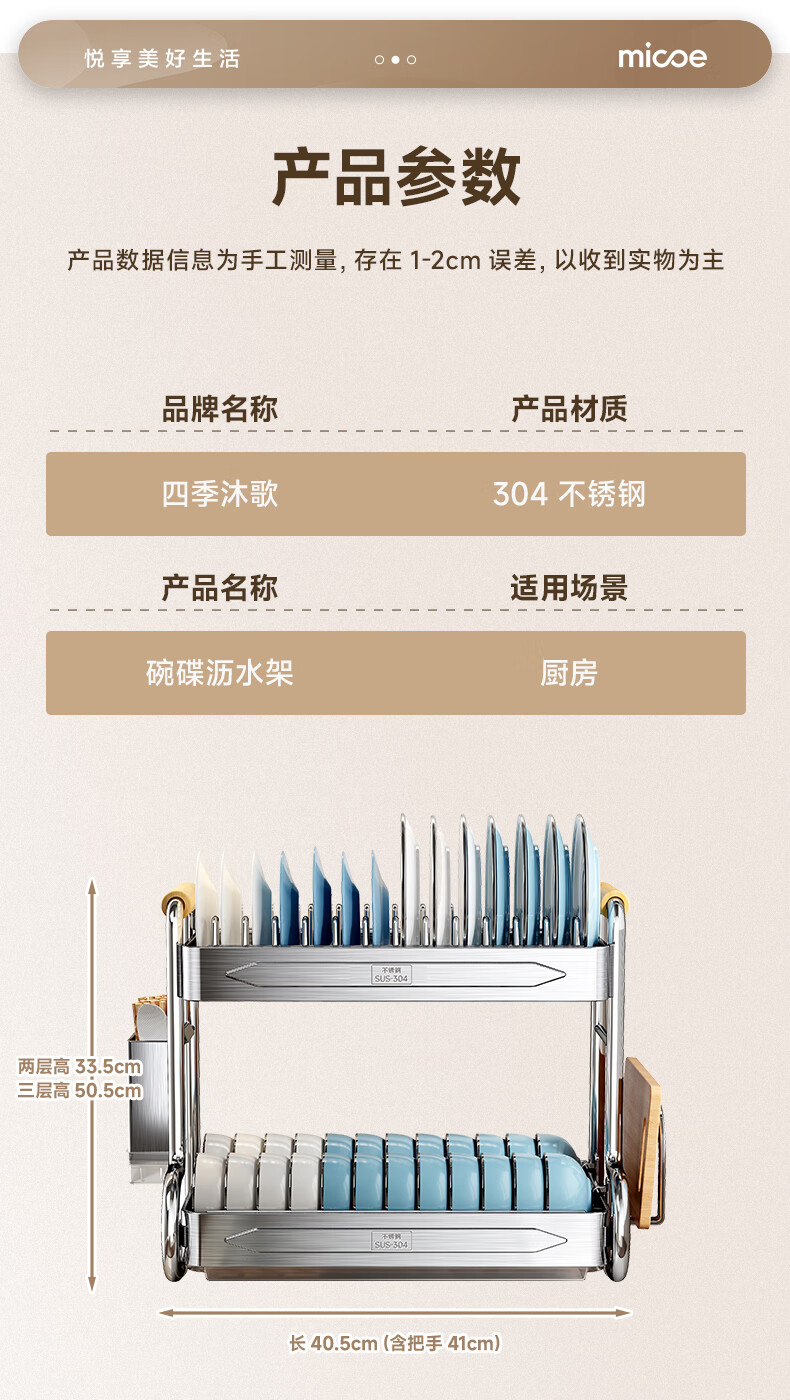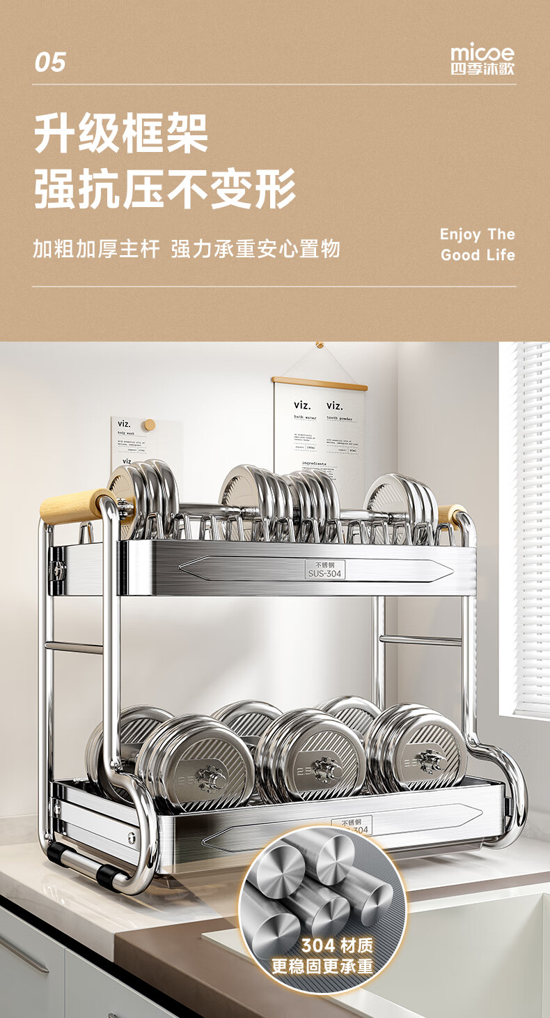 Four Seasons Muge kitchen rack 304 stainless steel dish rack drain rack for dishes and chopsticks storage cabinet box countertop utensils 304 stainless steel 2 layers 43 long - fully equipped