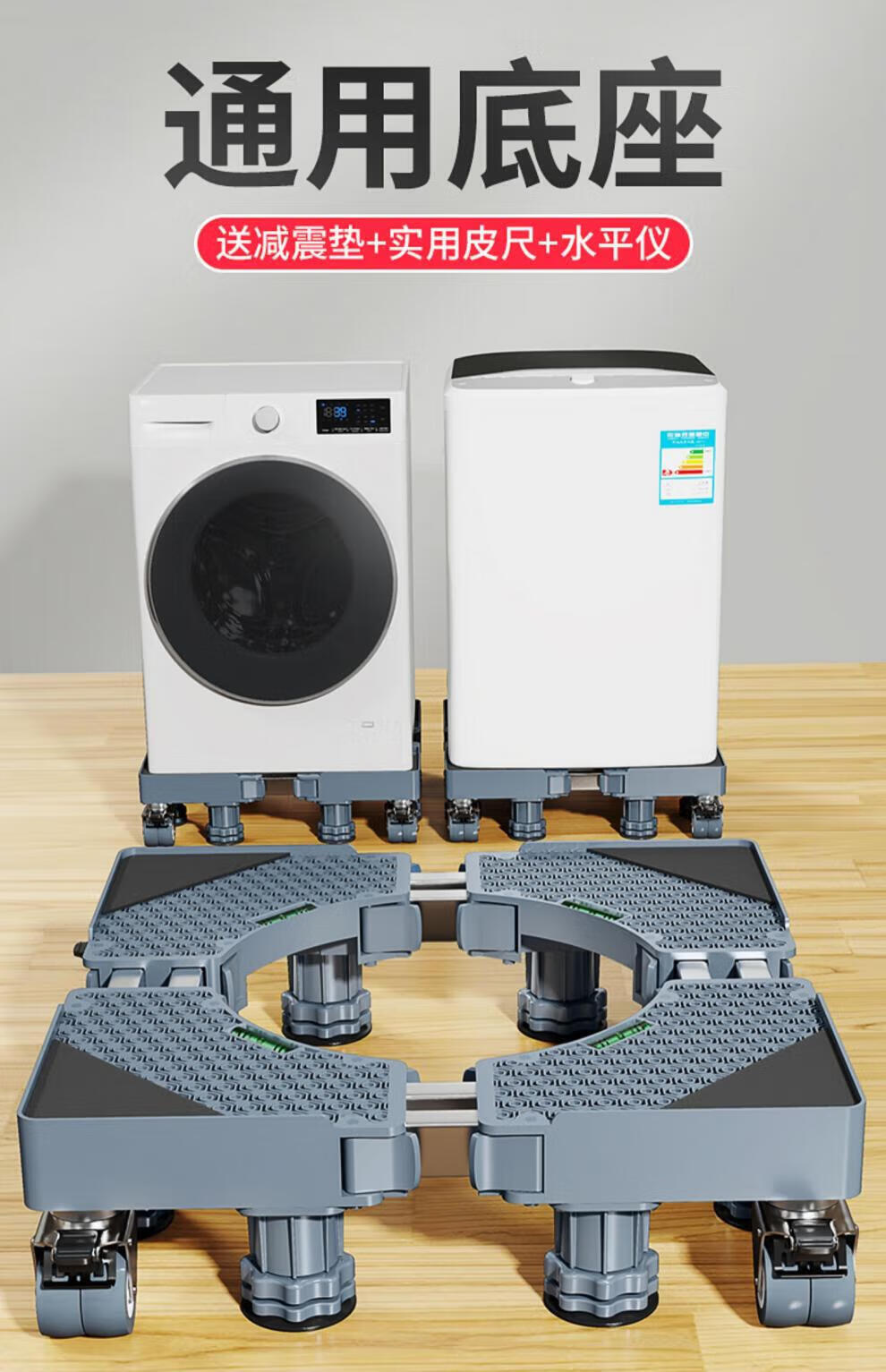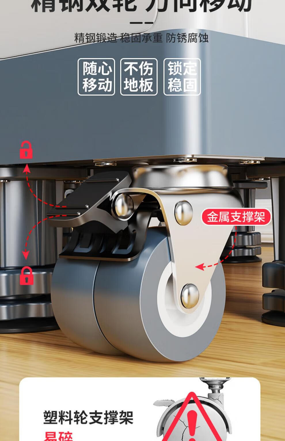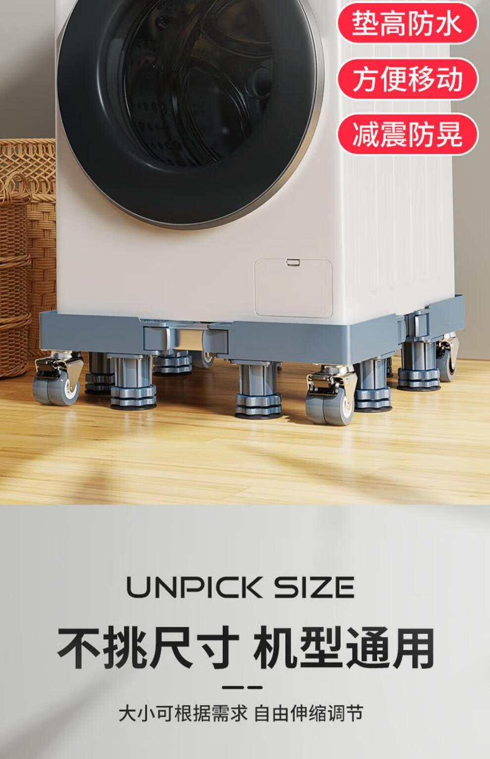 He Jiagong Haier washing machine base frame removable pulley shelf storage rack refrigerator booster bracket universal foot pad bracket upgraded and strengthened 4 suction cup feet special offer丨No