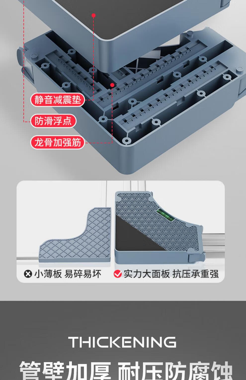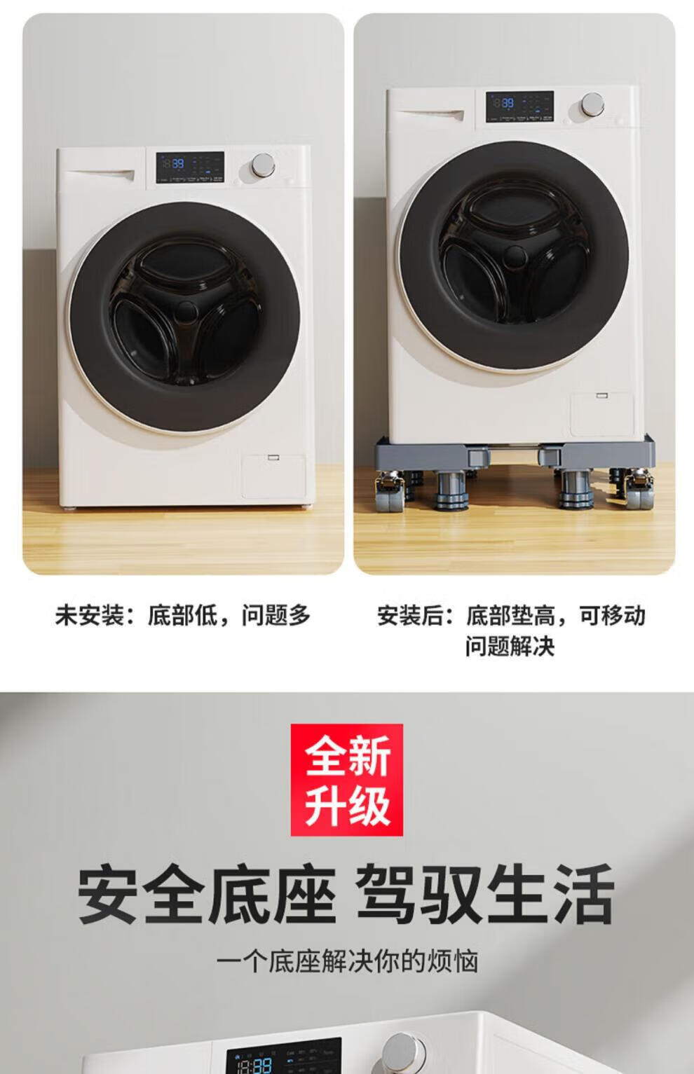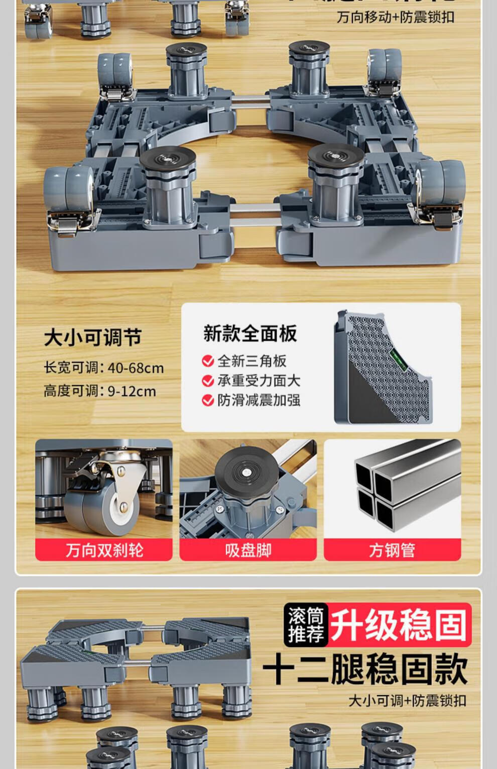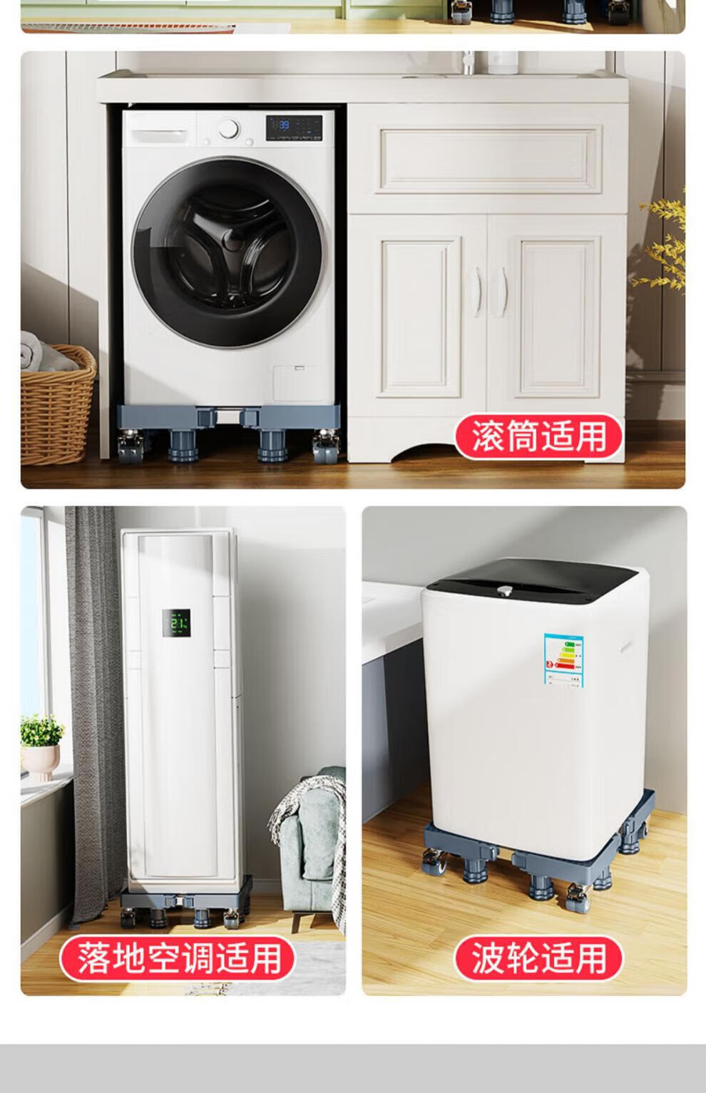 He Jiagong Haier washing machine base frame removable pulley shelf storage rack refrigerator booster bracket universal foot pad bracket upgraded and strengthened 4 suction cup feet special offer丨No