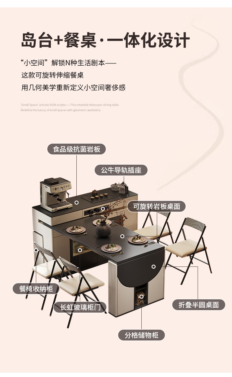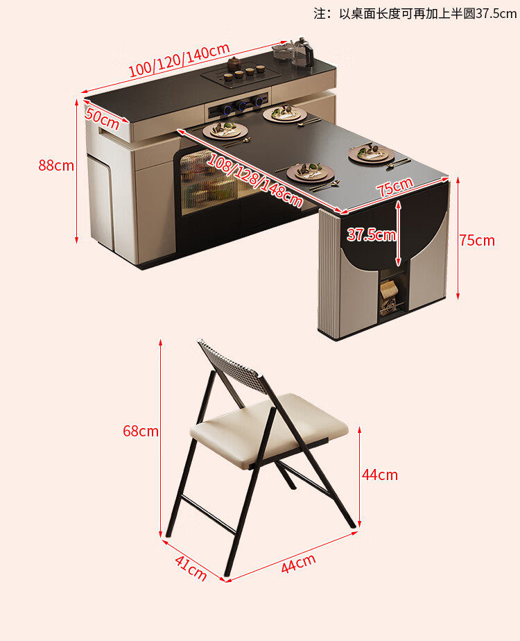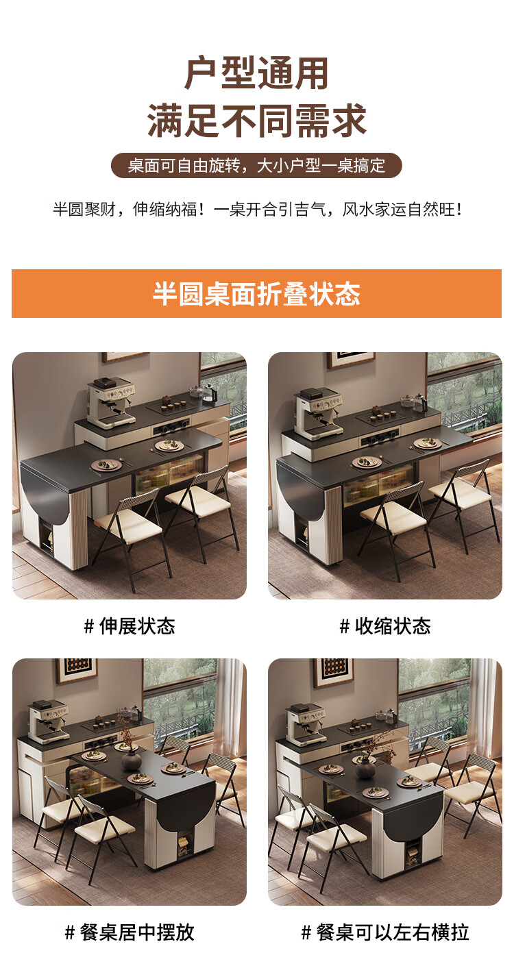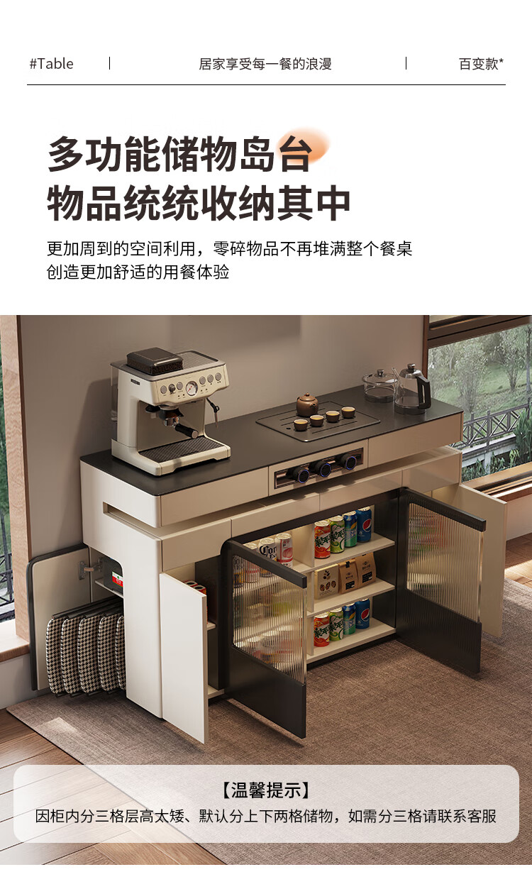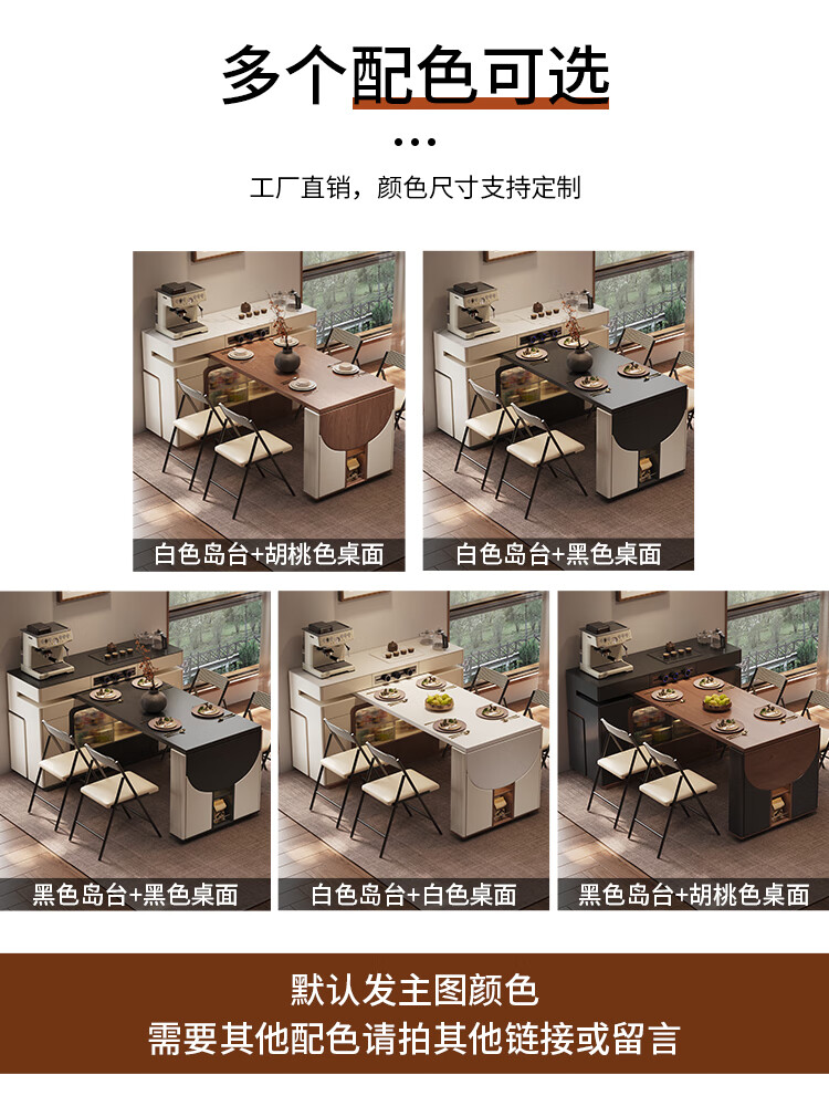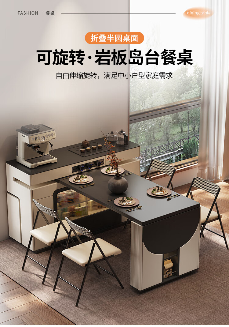 Micro-art solid wood island table retractable and foldable small-sized slate rotating multi-functional storage dining table and sideboard for home use Black versatile model All solid wood 1.2m slate island + 1.4m slate dining table (flat style)