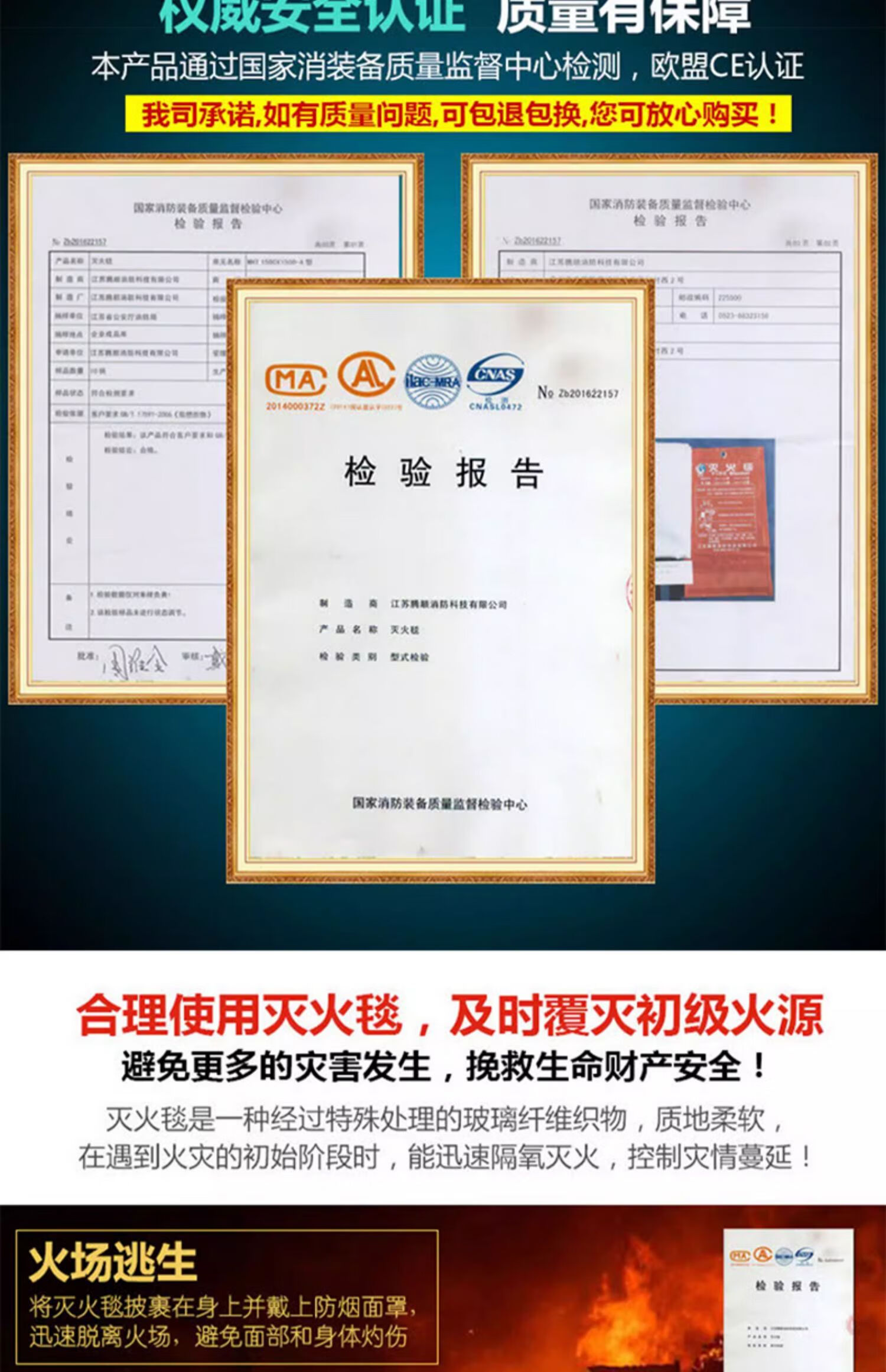 Fire blanket household fire protection certification 1.5 meters 2 meters national standard kitchen commercial new silicone fire blanket special flame retardant coated silicone 1.5 meters * 1.5 meters (green box)