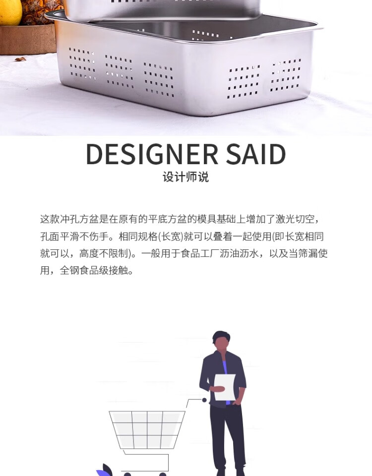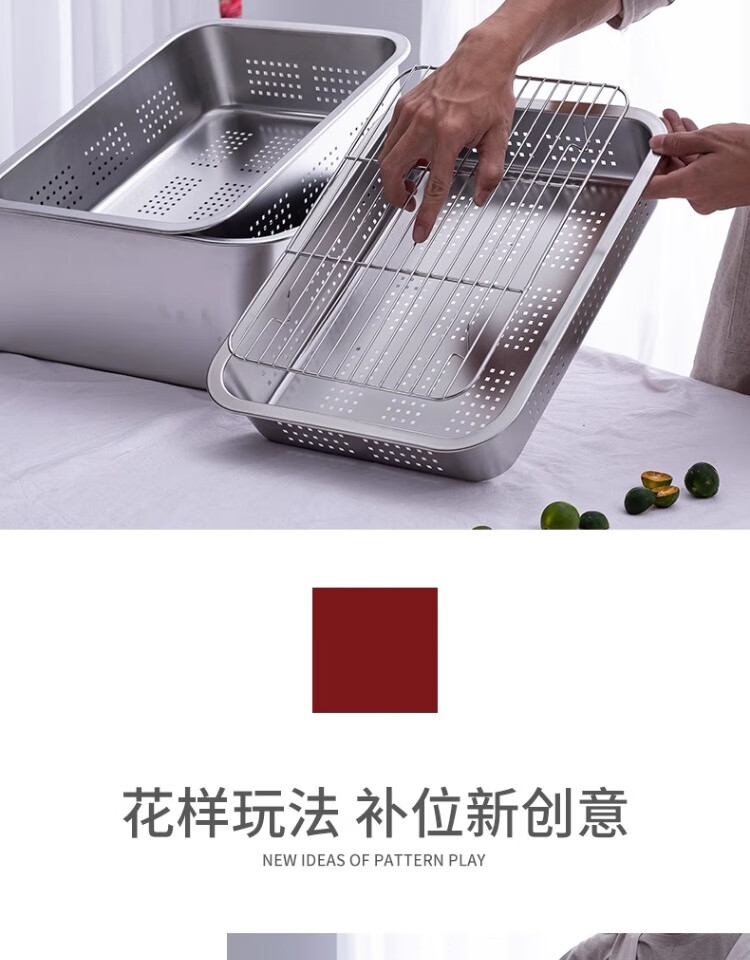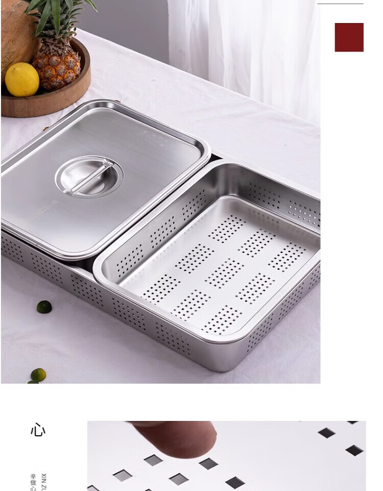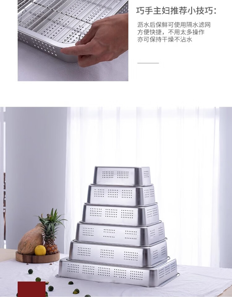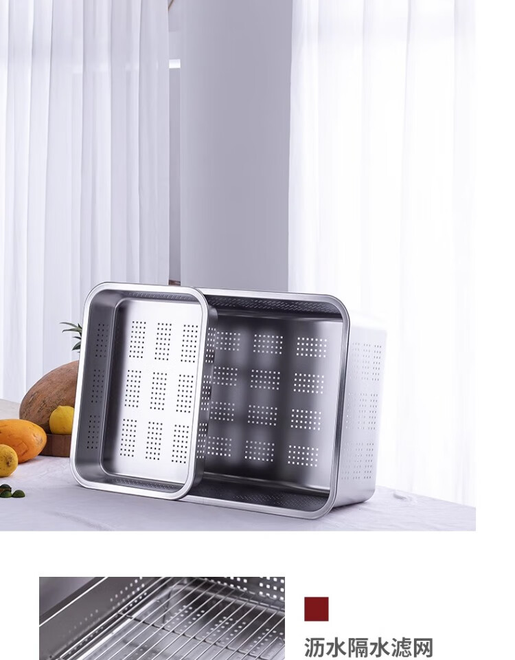 Muke 304 stainless steel square basin drain basket filter large mesh basin drain basket drain basin wash basin drip tray square box 32x22 double layer model (drainage 7cm + storage 10cm)