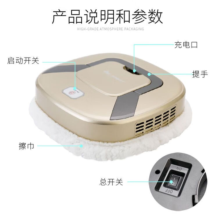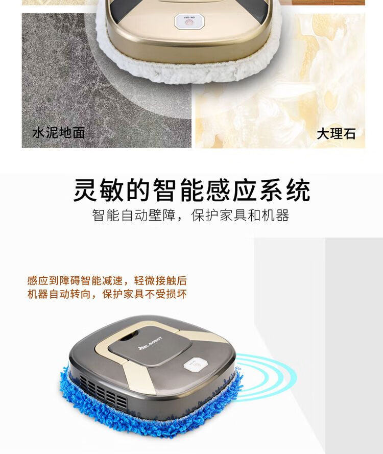 Fully automatic mopping robot, home intelligent sweeping robot, rechargeable ultra-thin wet and dry mopping tool, gold wet mop + dry mop top configuration