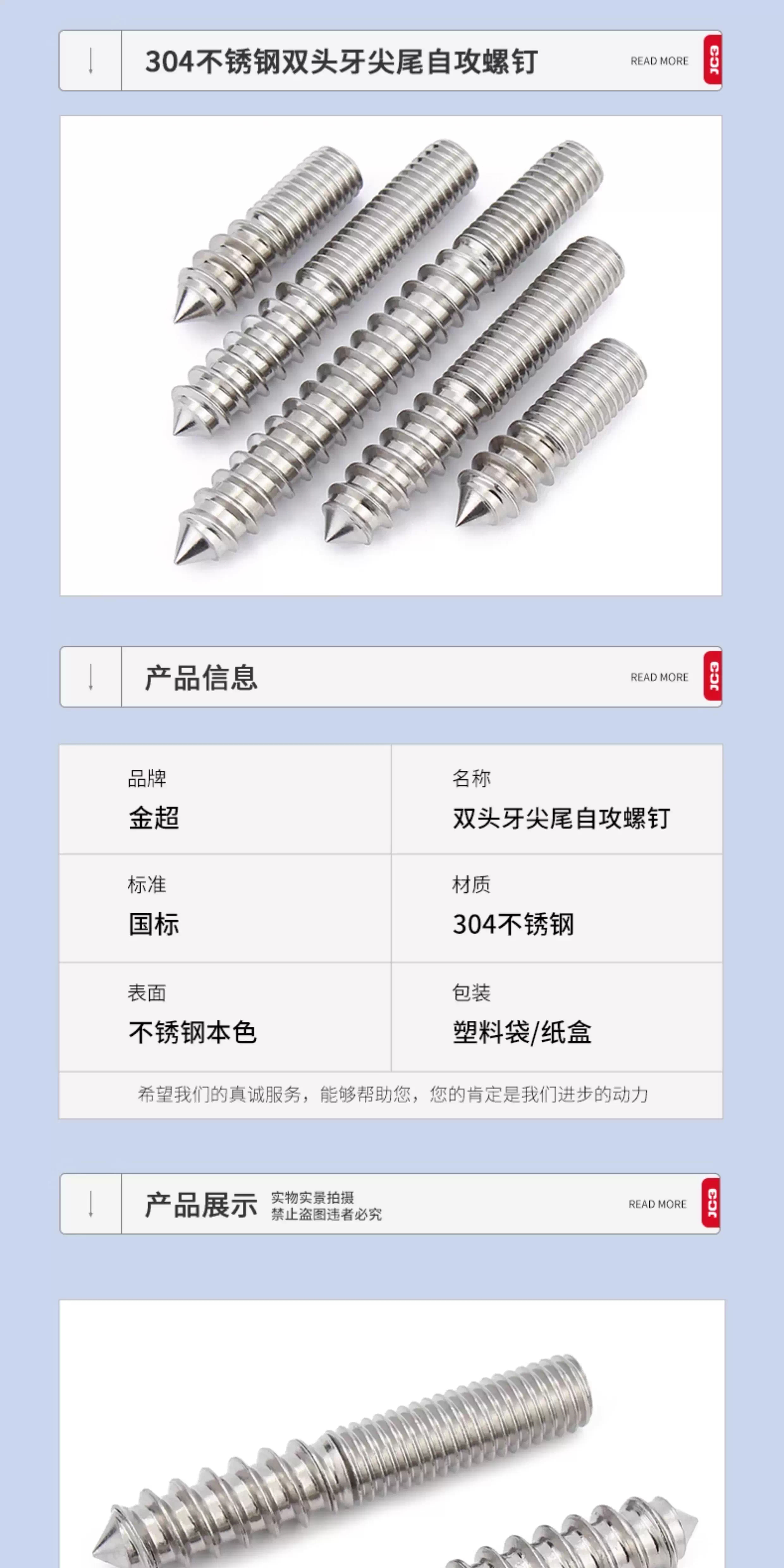 Jinchao 304 stainless steel double-headed tip and tail screws Hexagonal self-tapping screws with one thread and one tightening M4M5M6 M10*70 (2 pieces) 304