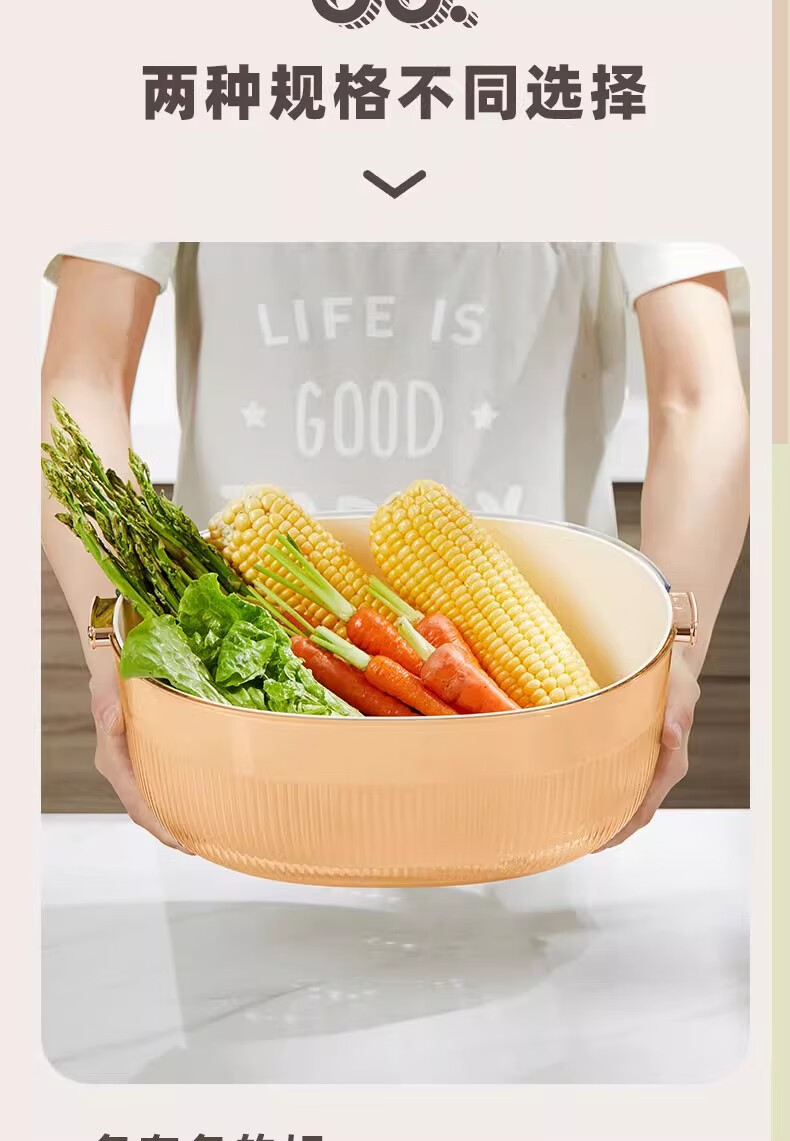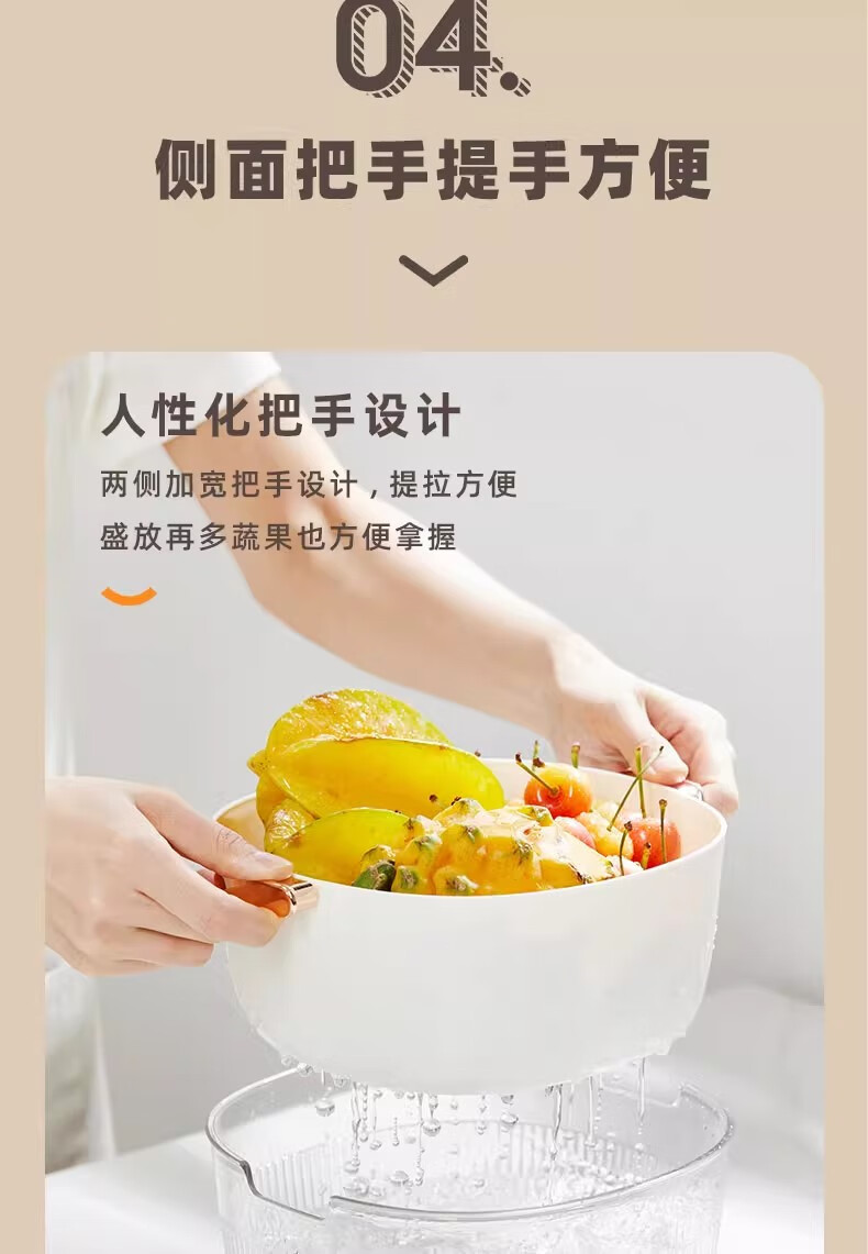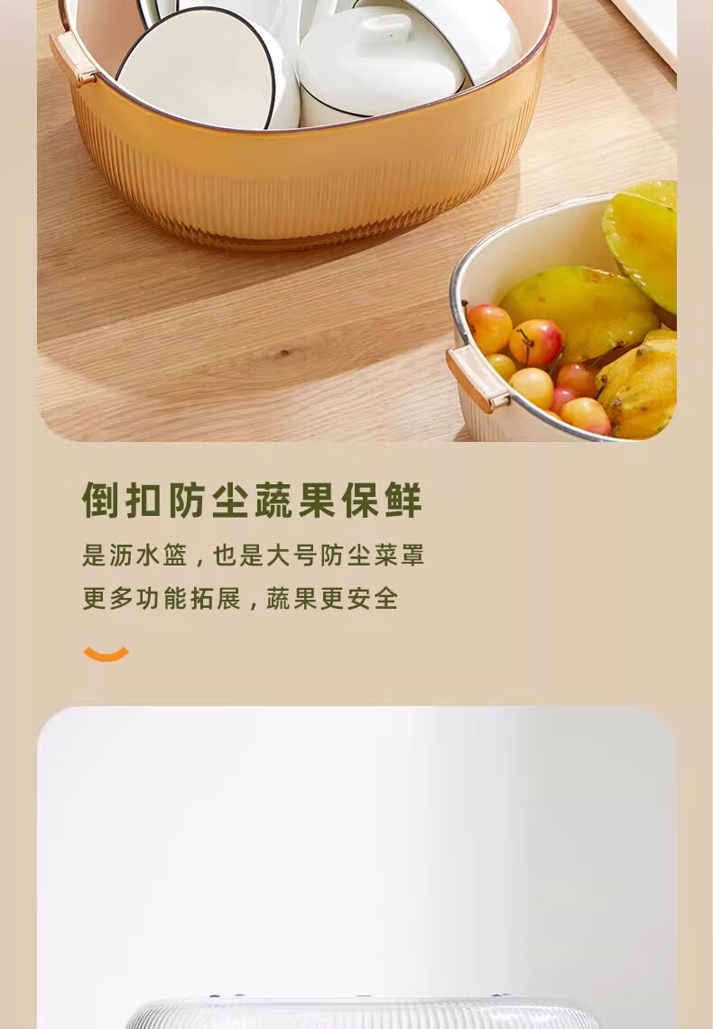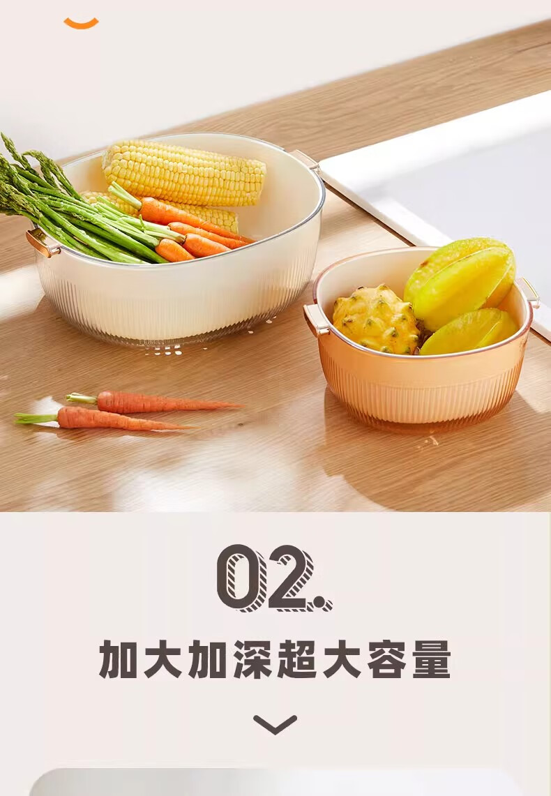 JCZS Japanese quality enlarged vegetable sink drain basket for washing fruits double-layer new multi-functional kitchen household tray living room upgraded model enlarged double-layer drain basket large (white)