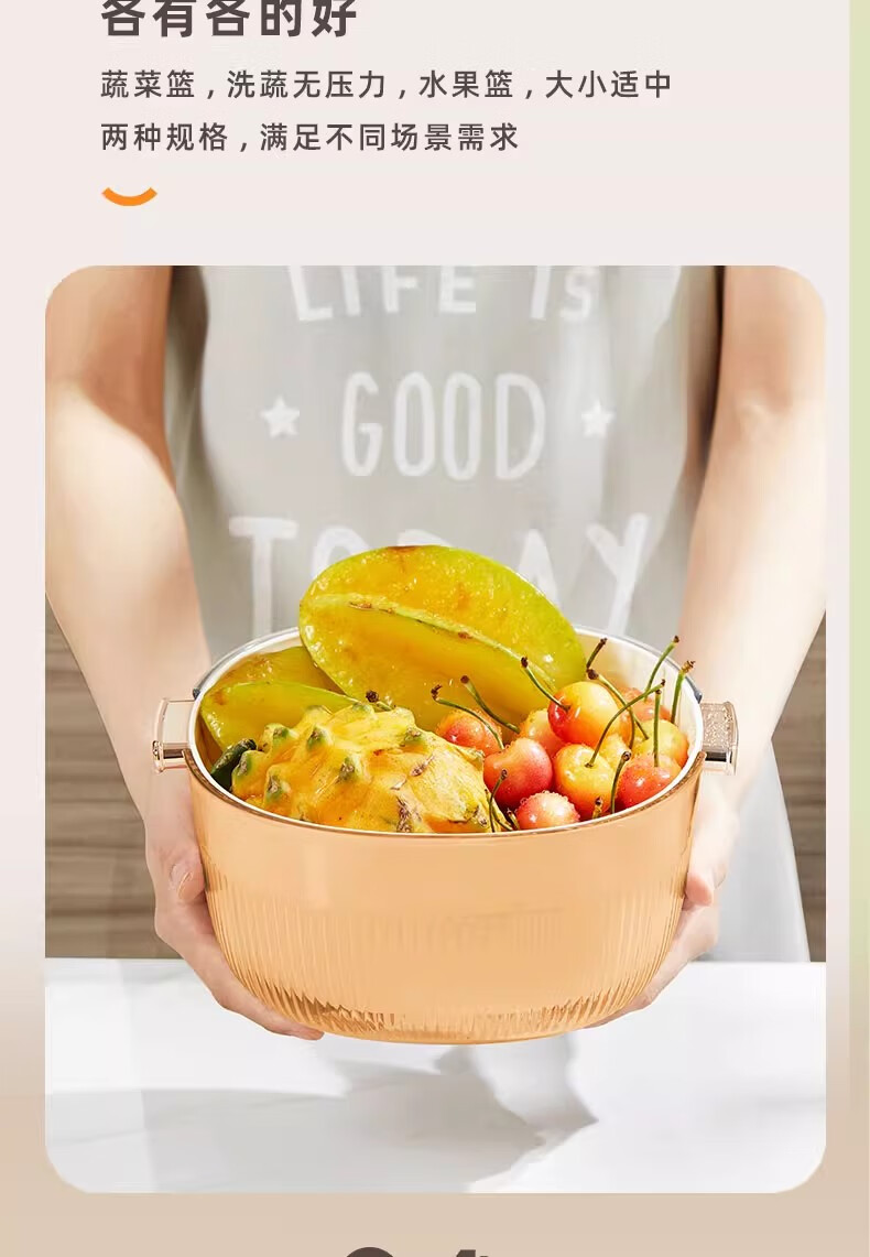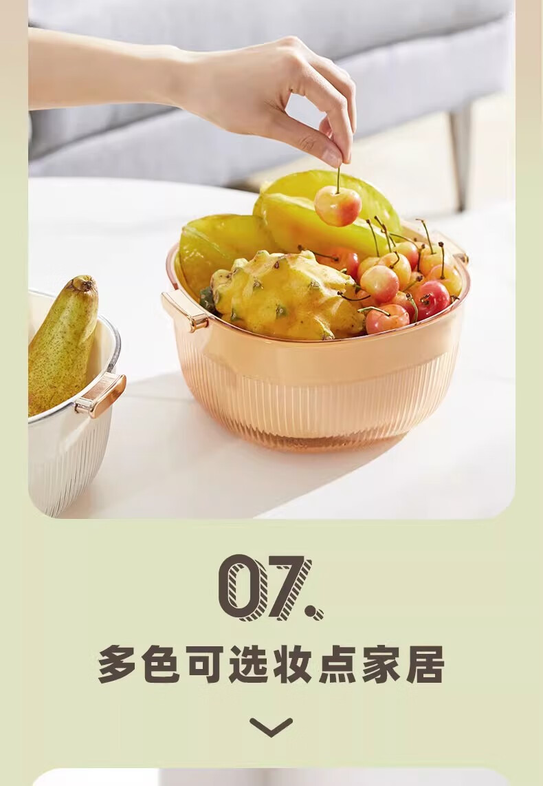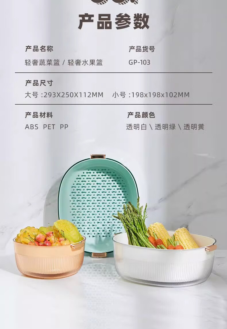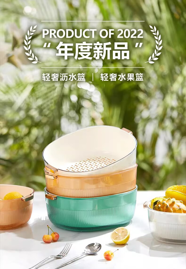 JCZS Japanese quality enlarged vegetable sink drain basket for washing fruits double-layer new multi-functional kitchen household tray living room upgraded model enlarged double-layer drain basket large (white)
