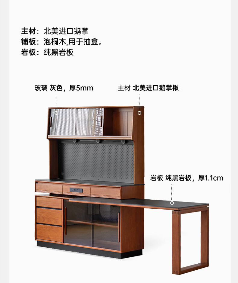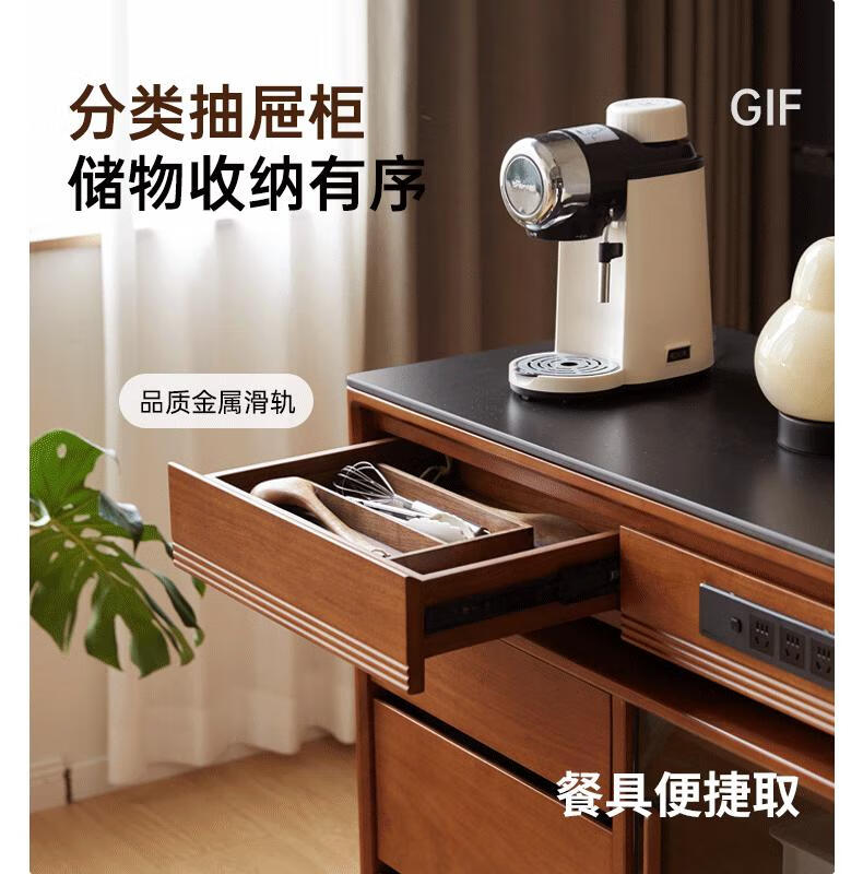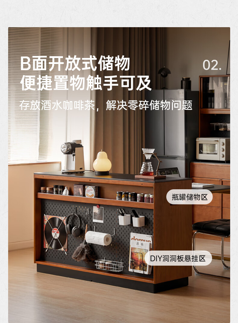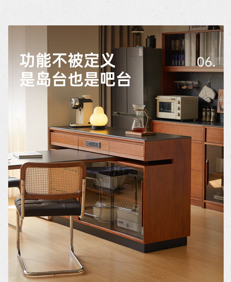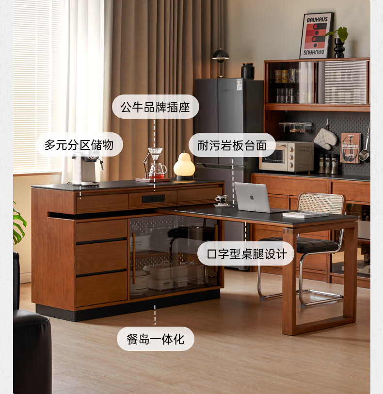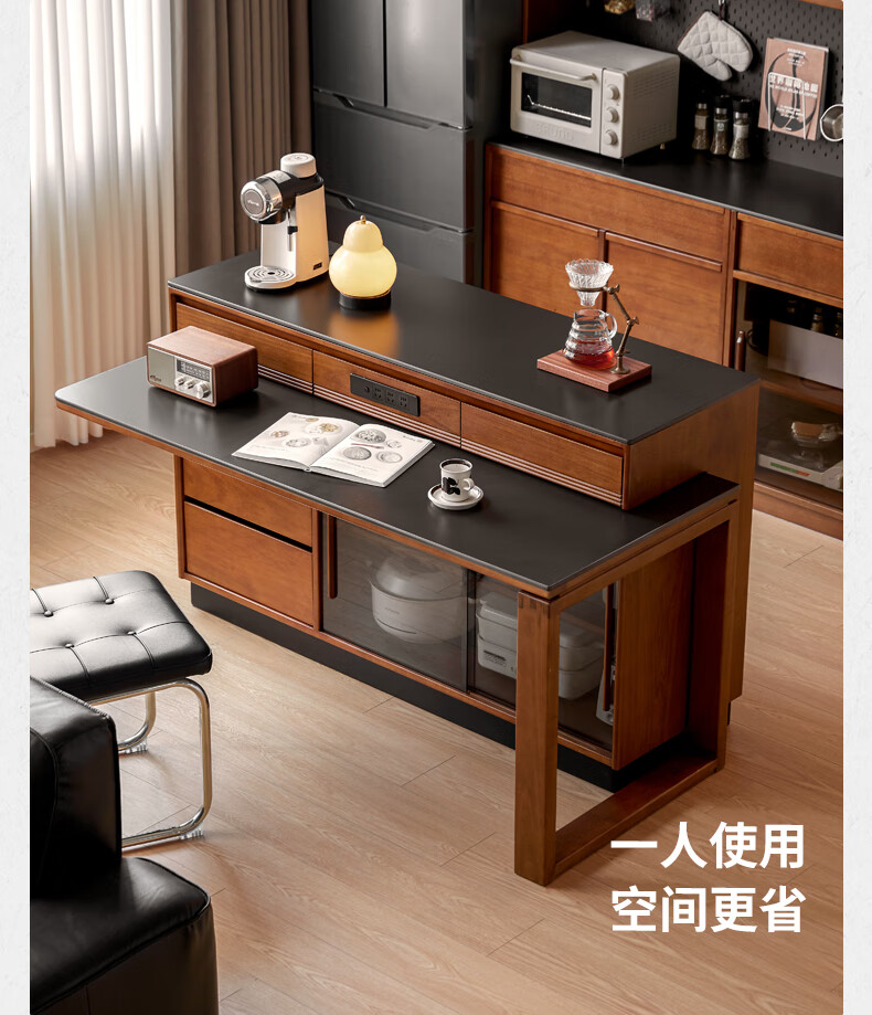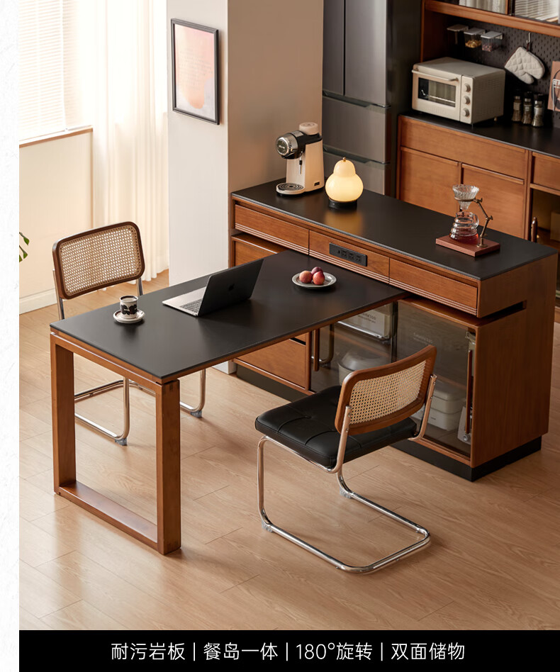 Genji Muyu solid wood island dining table, antique-style restaurant revolving console, home slate sideboard cabinet, 1.4m built-in table island (1404*910*930mm)
