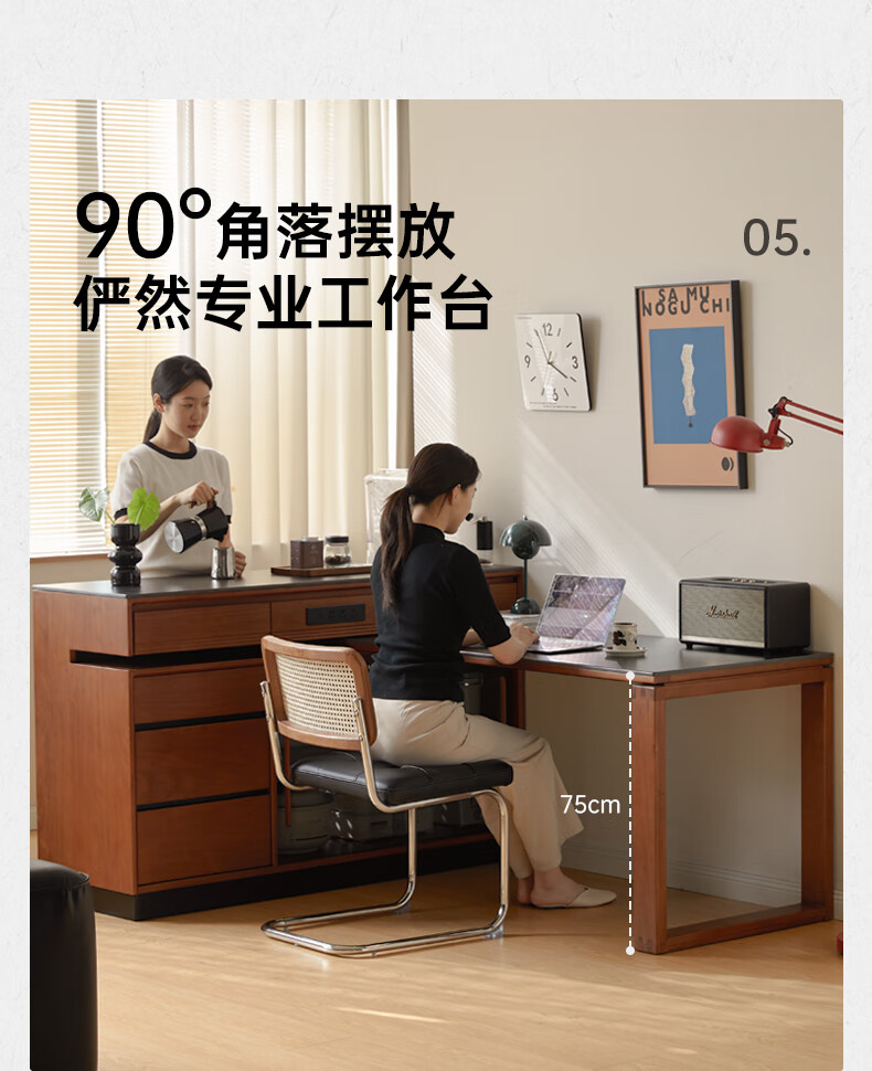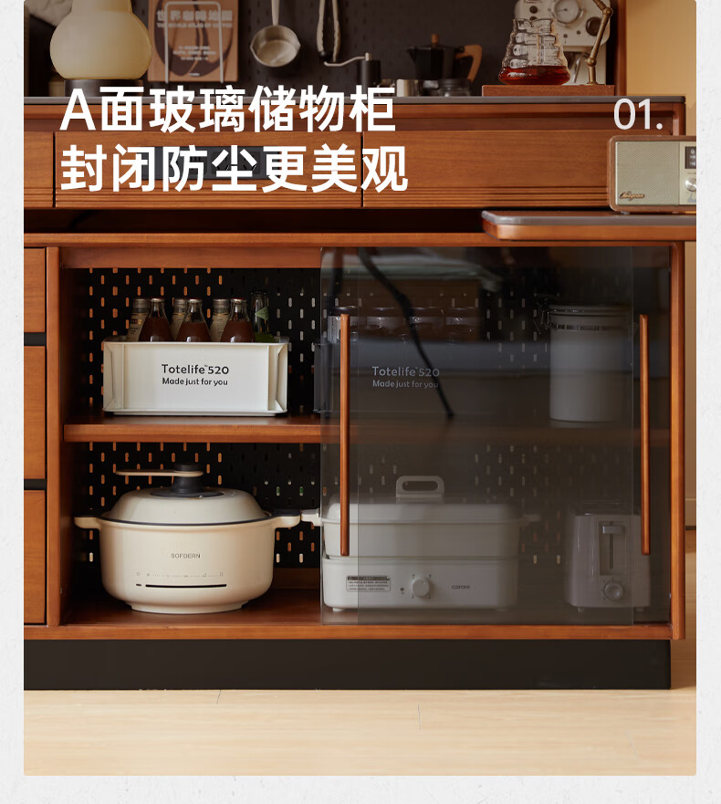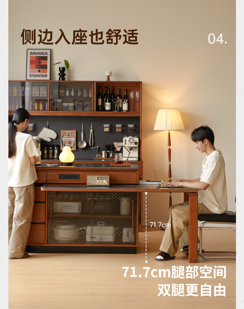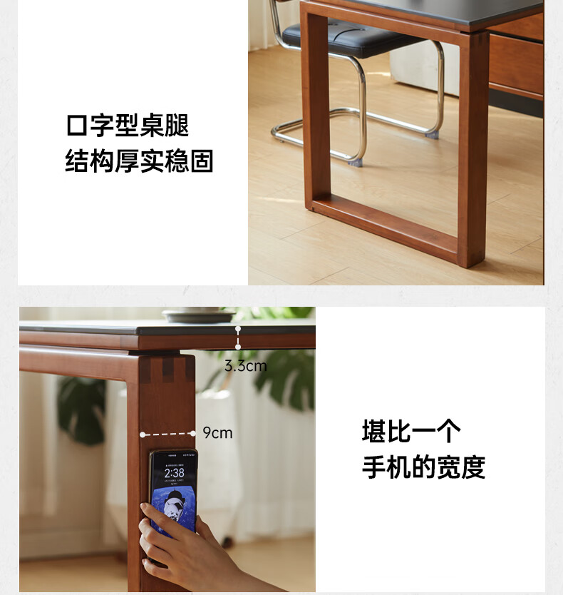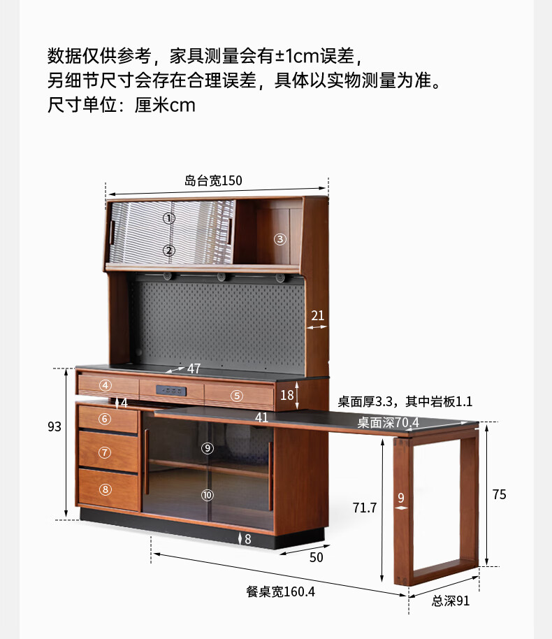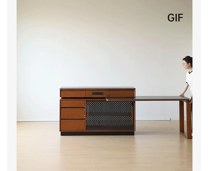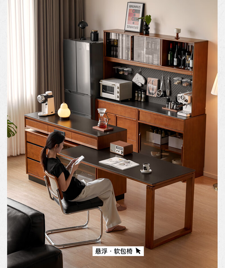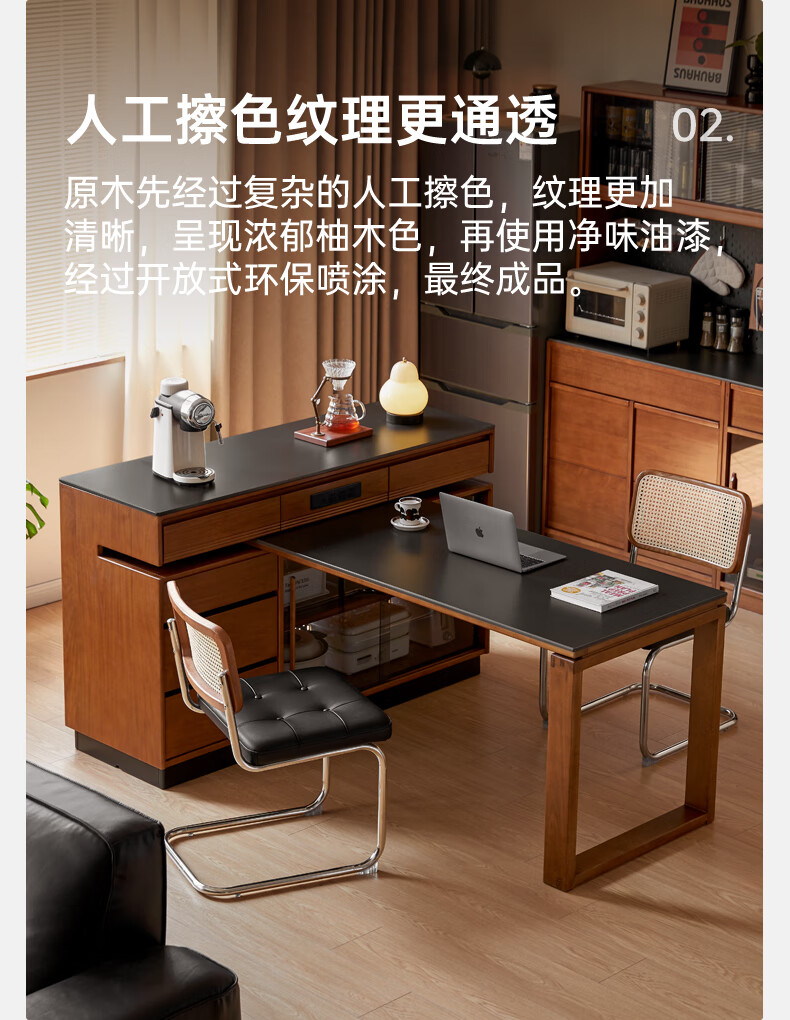Genji Muyu solid wood island dining table, antique-style restaurant revolving console, home slate sideboard cabinet, 1.4m built-in table island (1404*910*930mm)