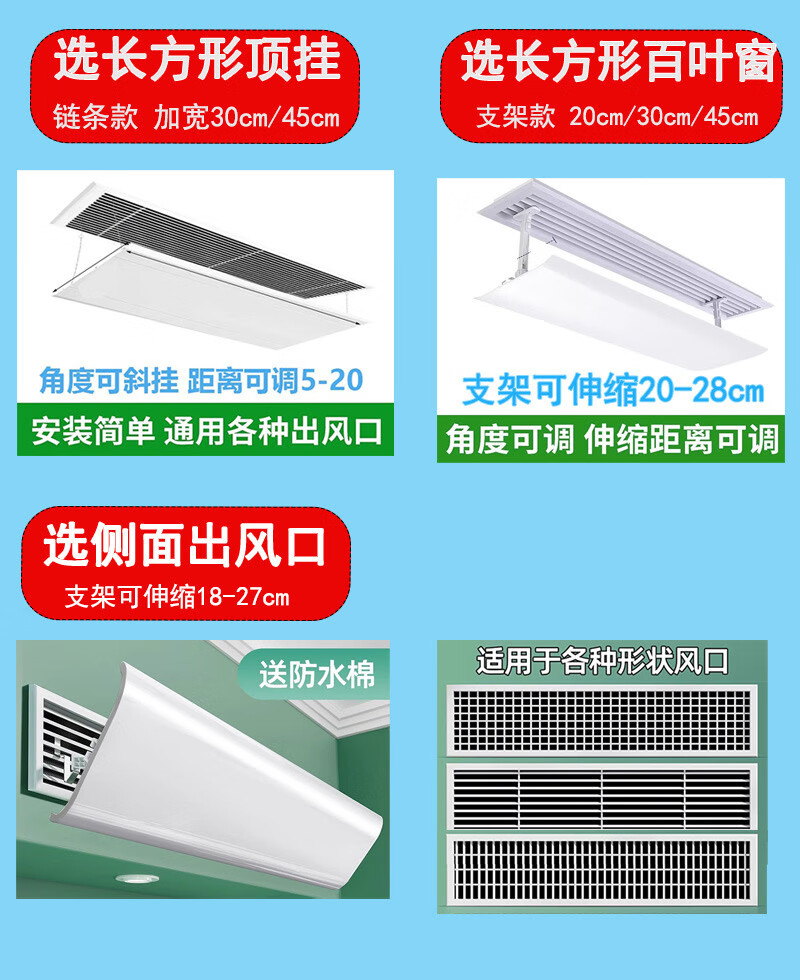 Central air conditioning outlet wind shield to prevent direct blowing duct machine air outlet wind shield square ceiling machine ceiling rectangular blinds 20*80 Free waterproof cotton for invoicing