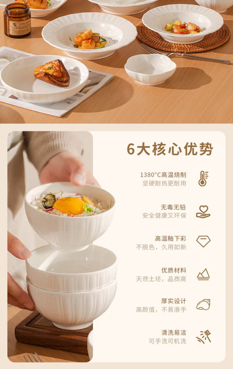 Lowe Youmi Rabbit Ceramic Plate Home Dish Plate High Temperature White Porcelain Dish Plate Deepened Plate Bowl Home 2025 New Plate Elegant Lace 7-inch Lace Plate 2 Pack No Specifications
