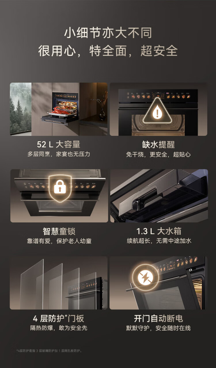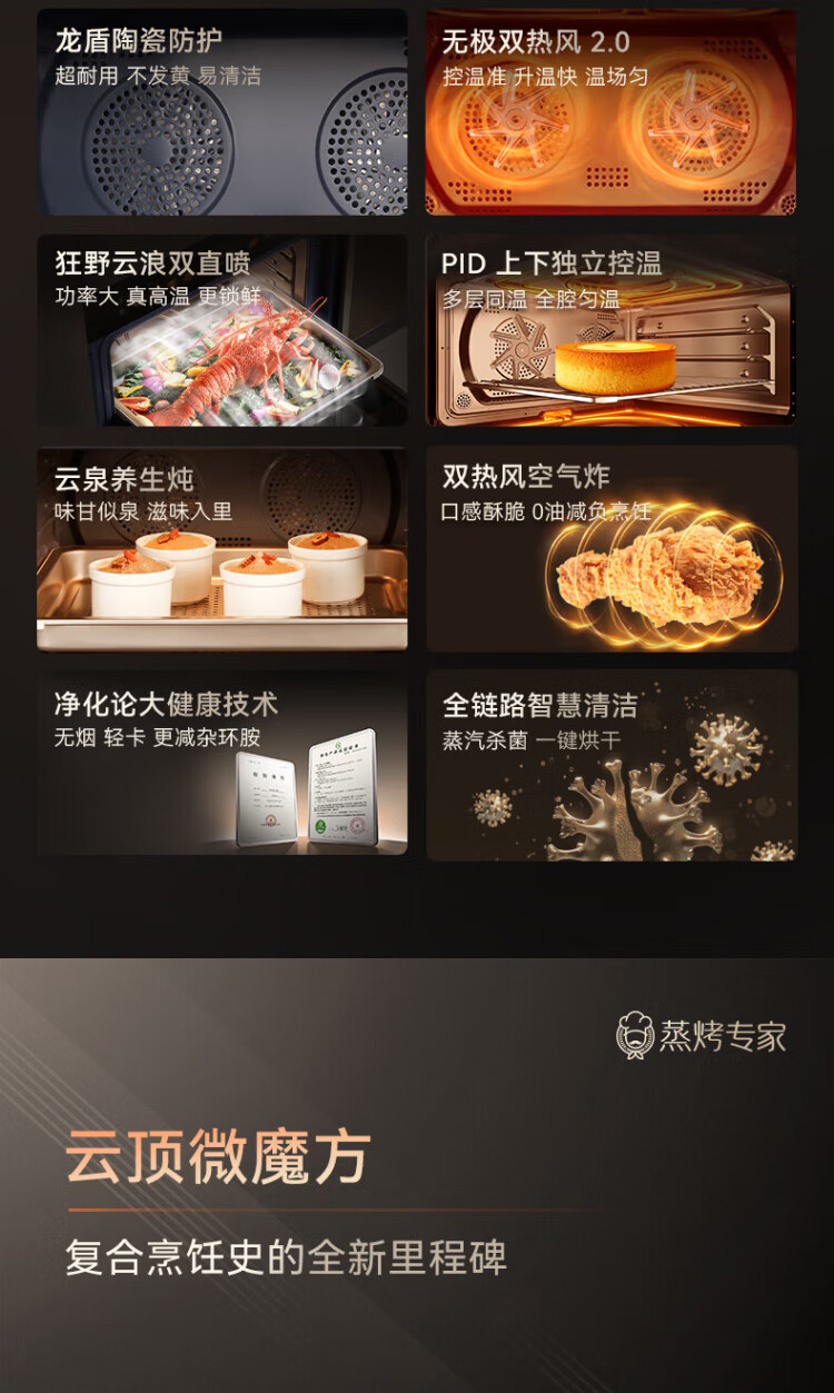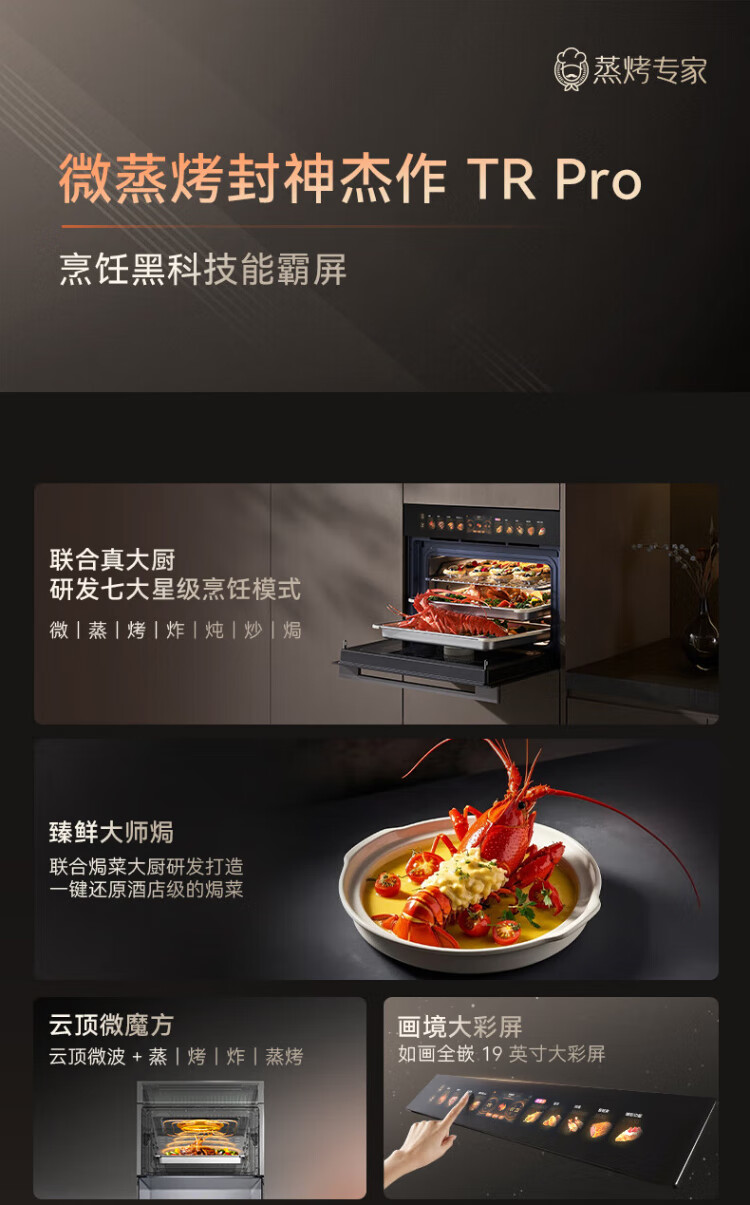 Kantar TRpro has the same level of performance. Officially recommended model P1. Dual hot air 58L embedded micro-steaming and baking all-in-one machine. Micro-steaming, roasting, frying, stewing, stir-frying and baking. 7-in-1. Ultra-clear and colorful screen. New product of the same model as TRPro. P1