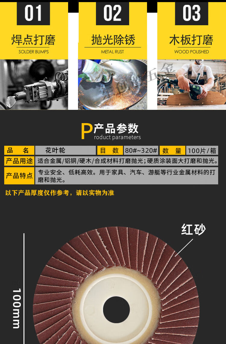 Louver impeller stainless steel polishing disc bendable flower-shaped impeller sandpaper louver blade black sand grinding disc Yongliang 80 mesh red sand soft edge 100 pieces