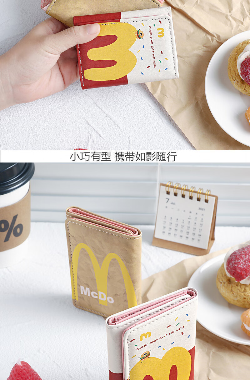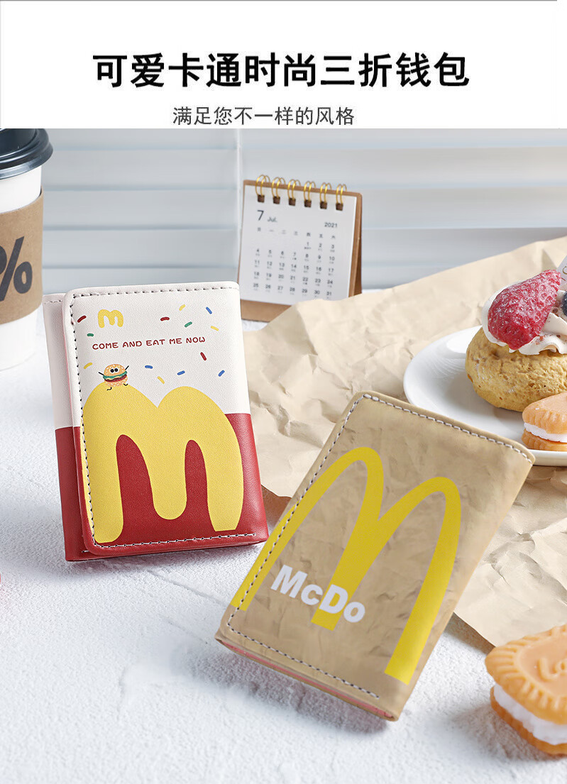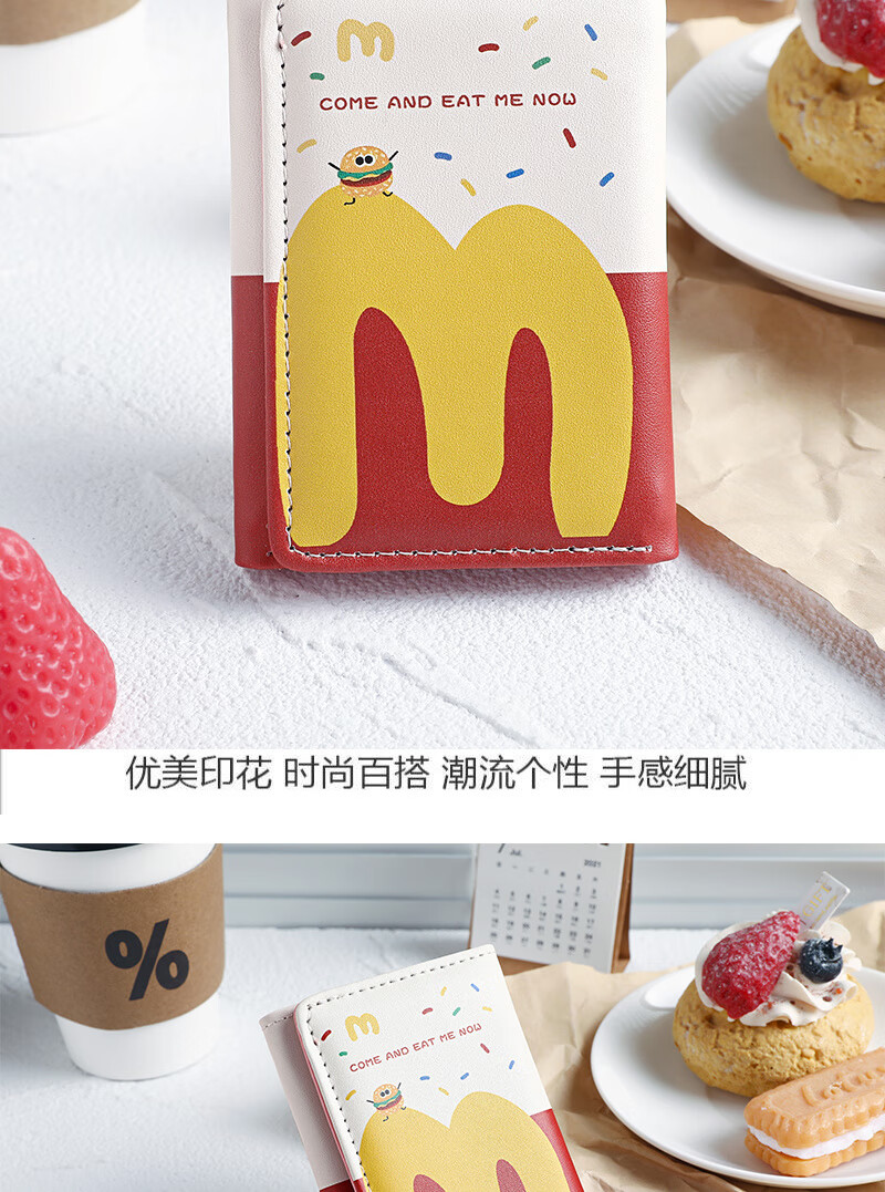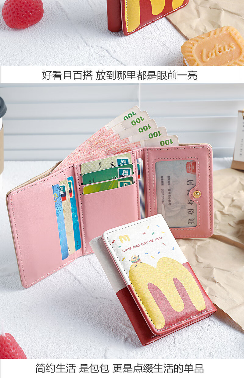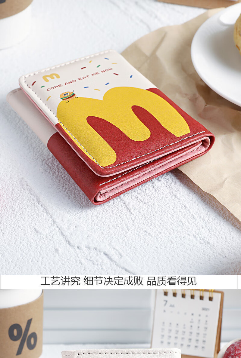 Henglan McDonald's Wallet Maimen M Note Portable Storage Tri-fold Wallet Campus Bank Card Student Body McDonald-MM Anti-Degaussing