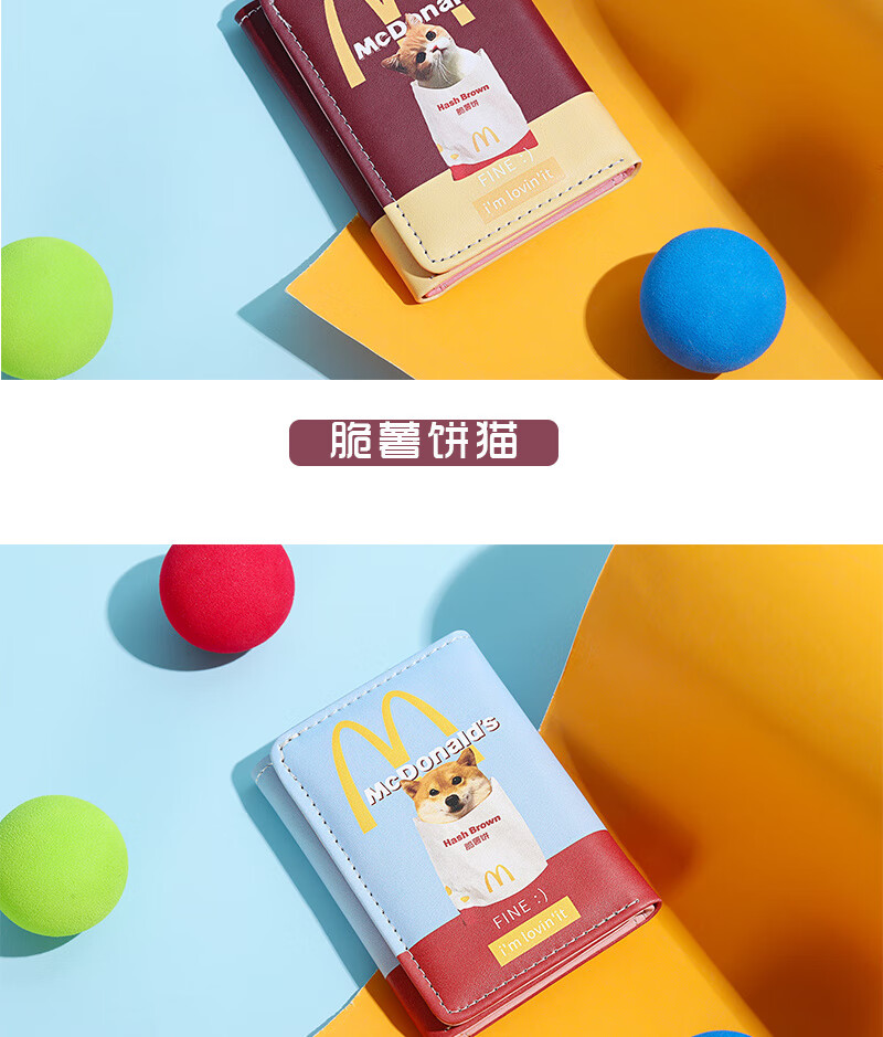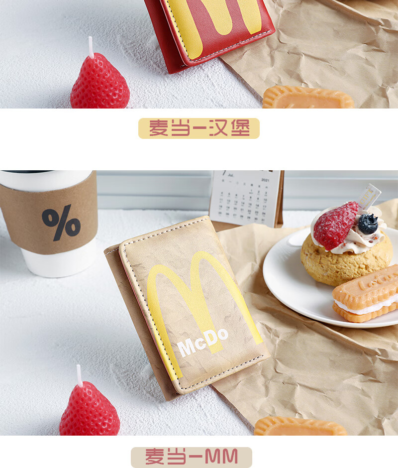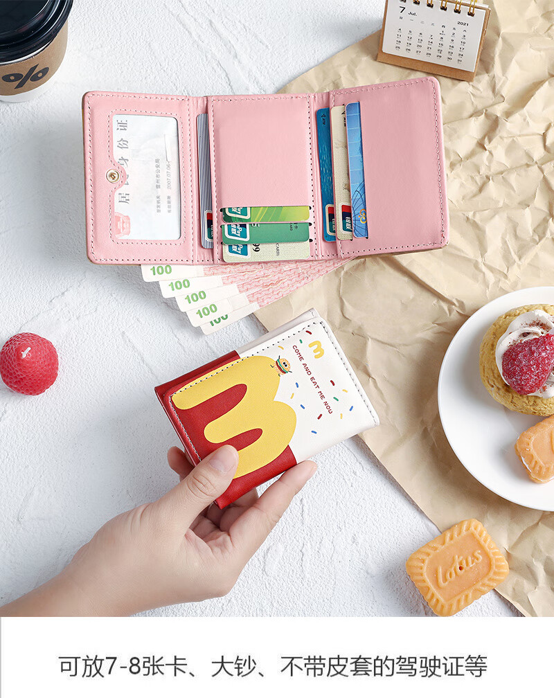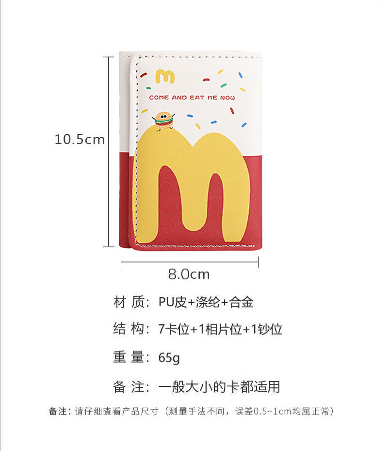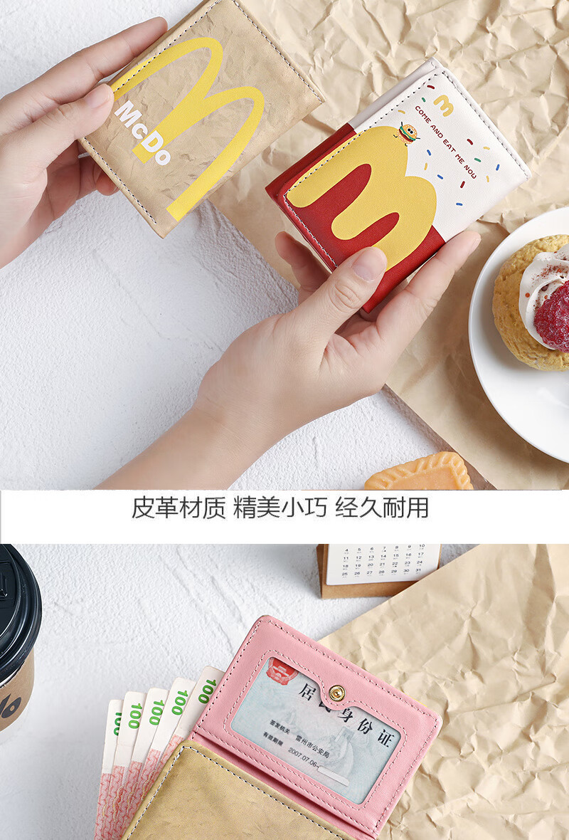 Henglan McDonald's Wallet Maimen M Note Portable Storage Tri-fold Wallet Campus Bank Card Student Body McDonald-MM Anti-Degaussing