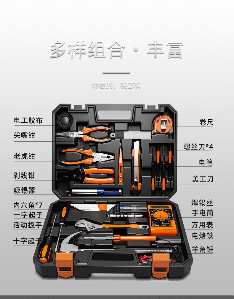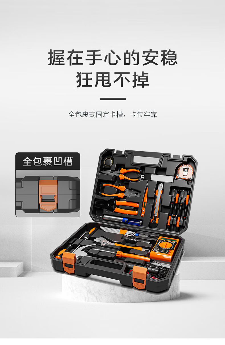 An Junsheng tool box set household full set of wrenches screwdriver wrench vise hammer multimeter set gift hardcover 9-piece set