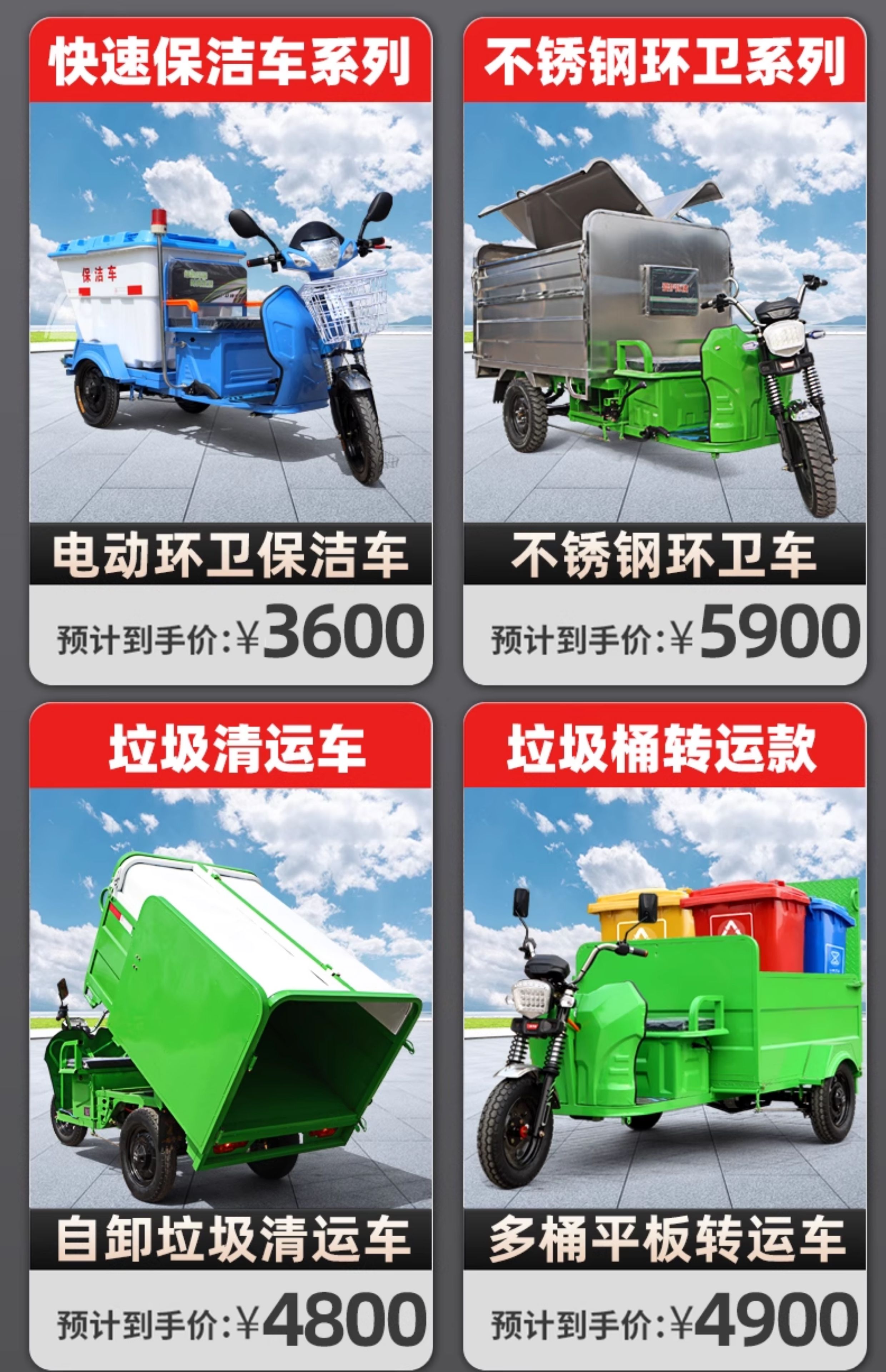 Electric garbage truck, cleaning truck, sanitation truck, tricycle, trash can transportation and transfer, four or six barrels, residential property street, single barrel naked vehicle (excluding battery and freight)