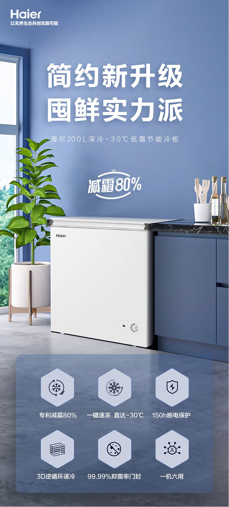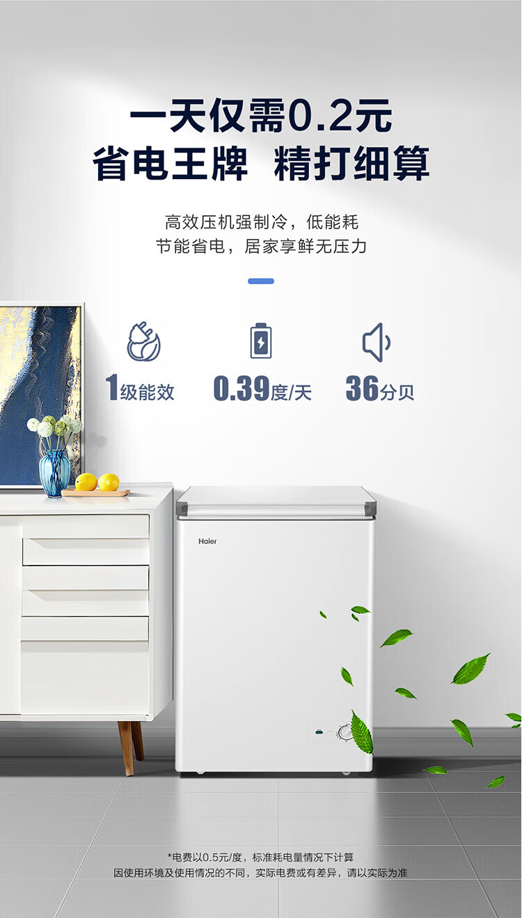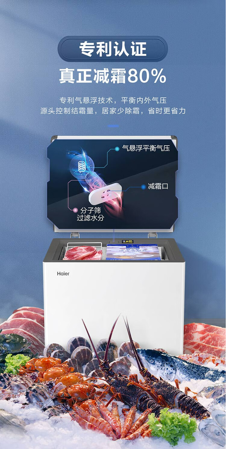 Haier household commercial freezer small freezer dual-purpose refrigeration and freezing - 30 degrees deep cooling quick freezing freshness preservation first-class energy efficiency and energy saving trade-in for new and enjoy subsidies 80% frost reduction new product 142 liters, about 198 pounds of frozen meat