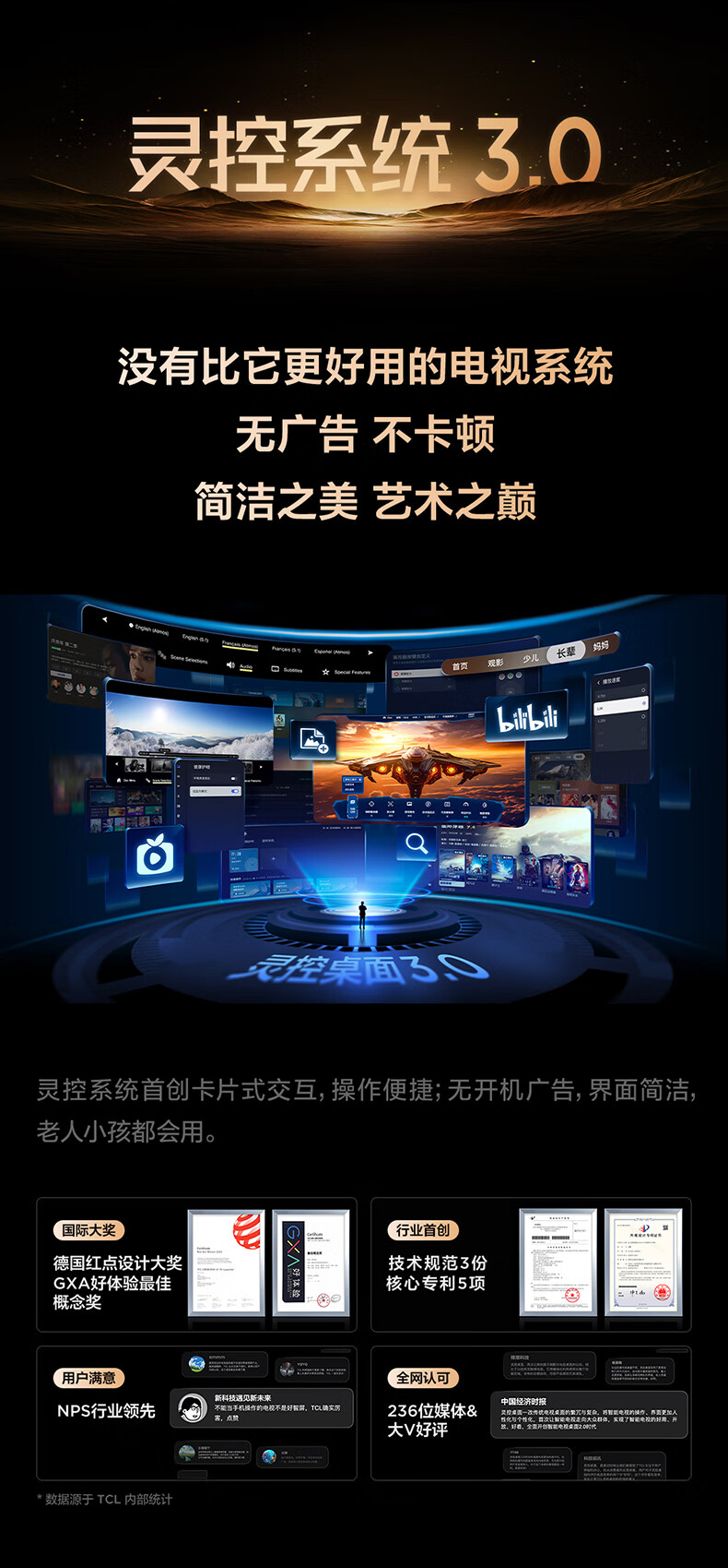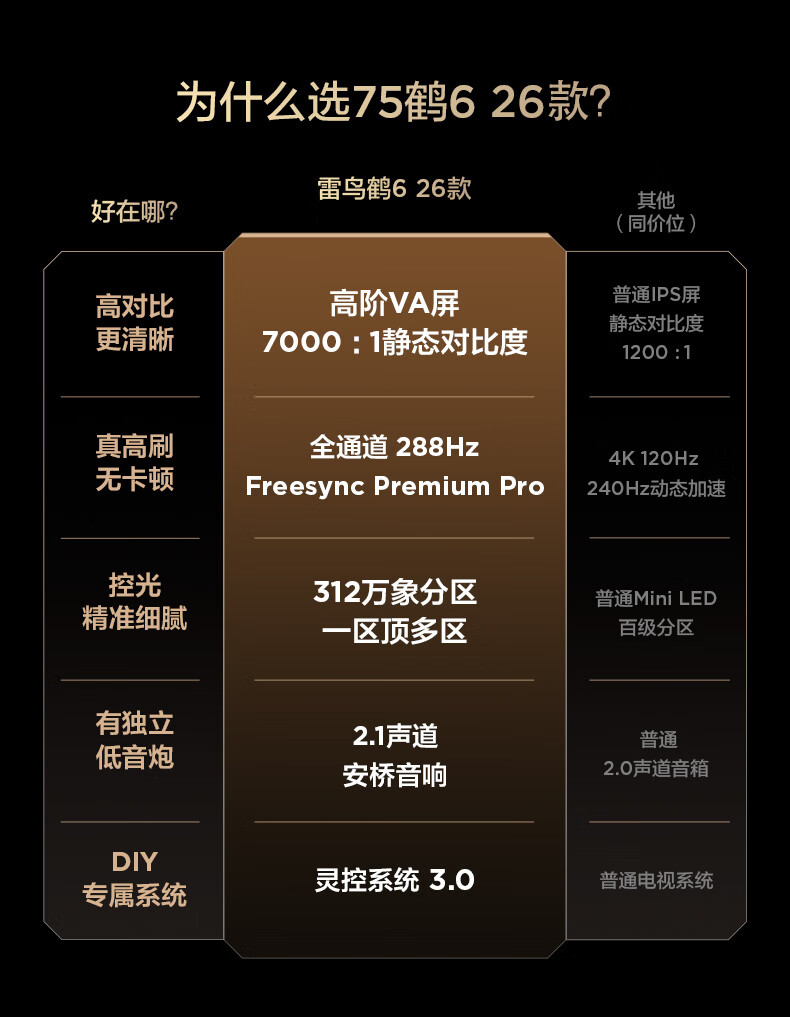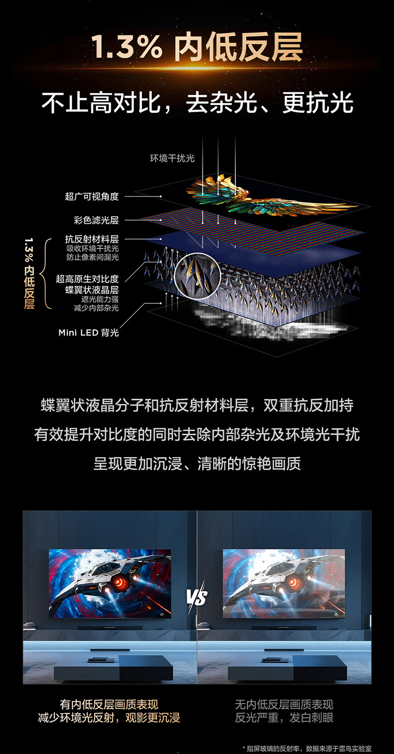 TCL Thunderbird TV Crane 6 26 models 75-inch Vientiane partition QD-MiniLED 1300nits high-end VA Onkyo audio 288Hz high brush 75-inch flat-panel TV