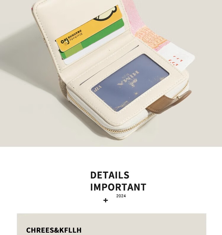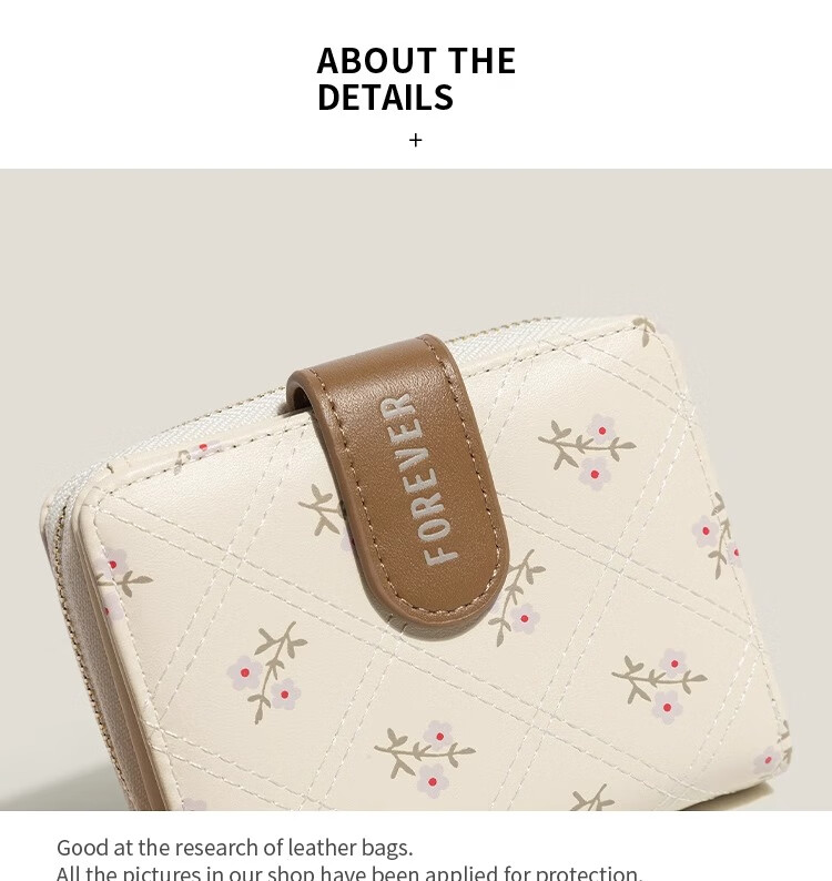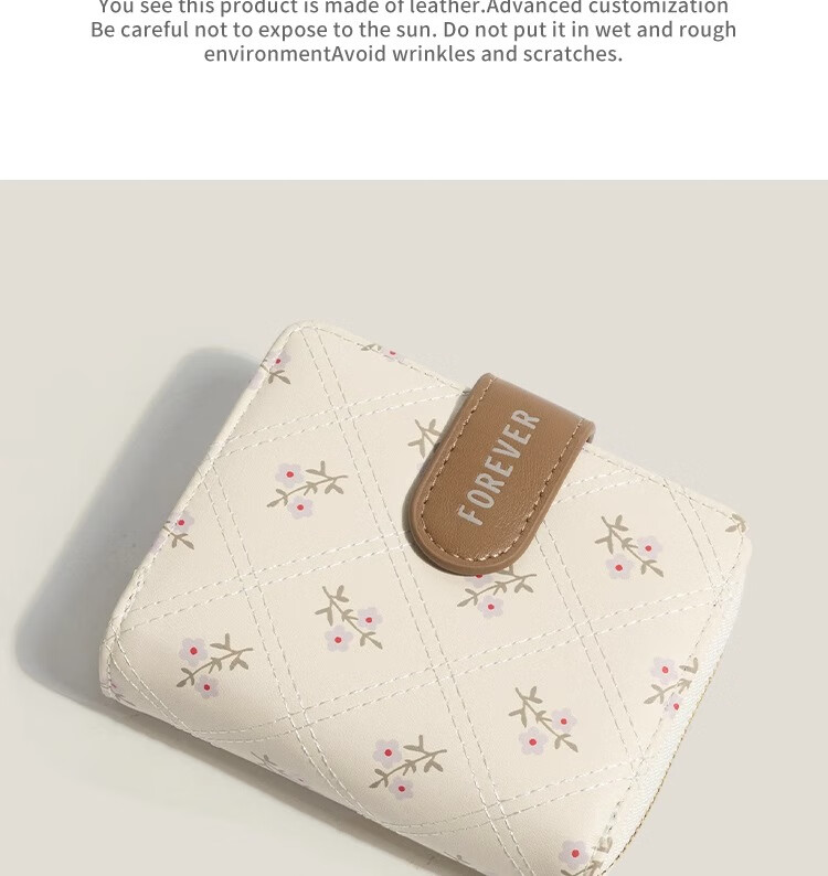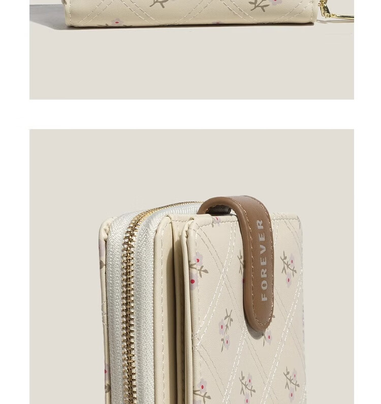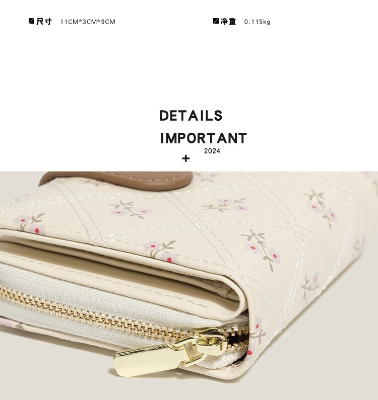 XSDN birthday gift floral coin purse for women ins style large capacity student card bag multi-card slot multi-functional short wallet beige + upgraded version thickened and wear-resistant