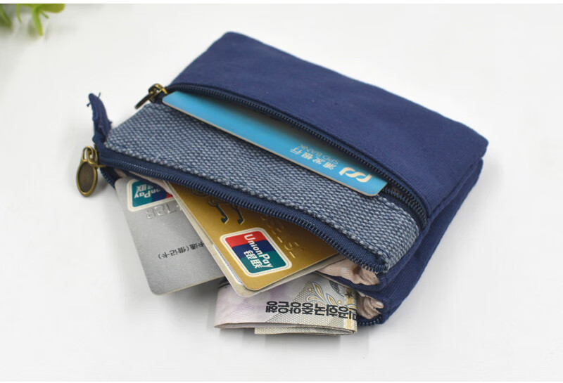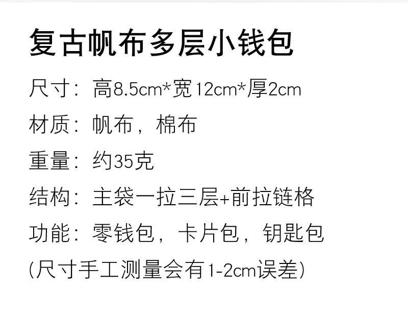 Husden XSDN canvas multi-layered small wallet simple new retro fabric mini small bag zipper coin purse card holder key bag orange