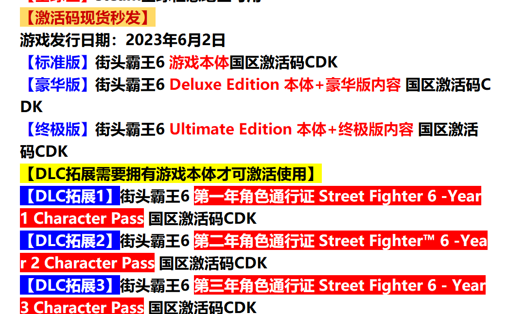 Get what you want Street Fighter 6 Steam Game Software Street Fighter 6 Street Fighter 6 National Region Activation Code CDK National Region Gifts Select According to Regulations Combination Deluxe Edition-388