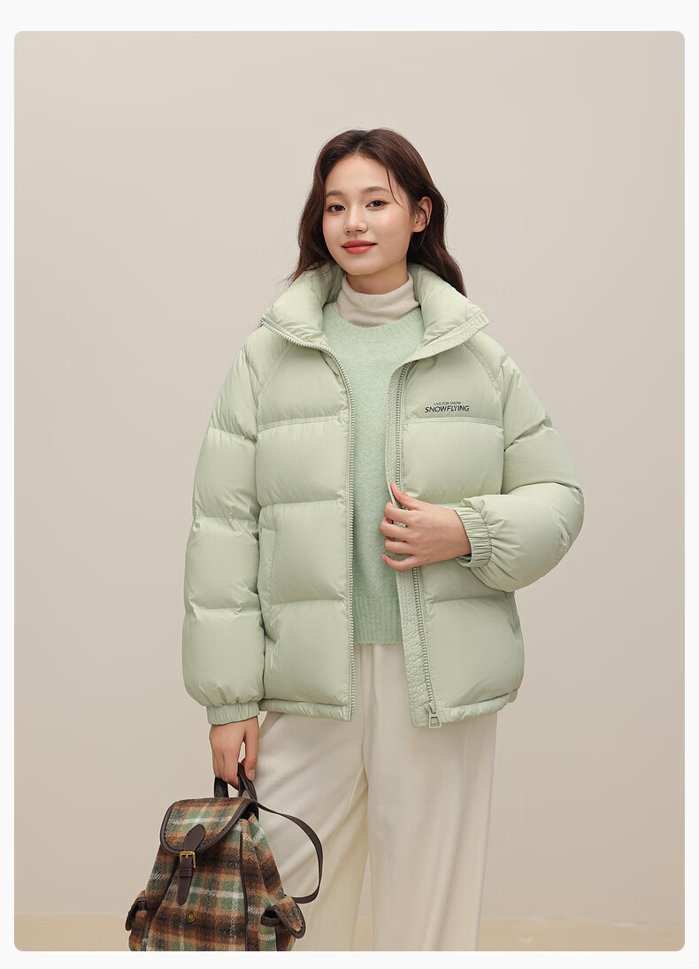 Flying in the Snow Cheng Yi's Same Style 2025 Winter New Noble Stand Collar Down Jacket Women's Winter Puff Colli Bread Jacket Ice Fruit Green|4316 M/160/84A