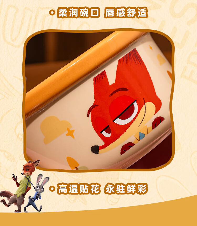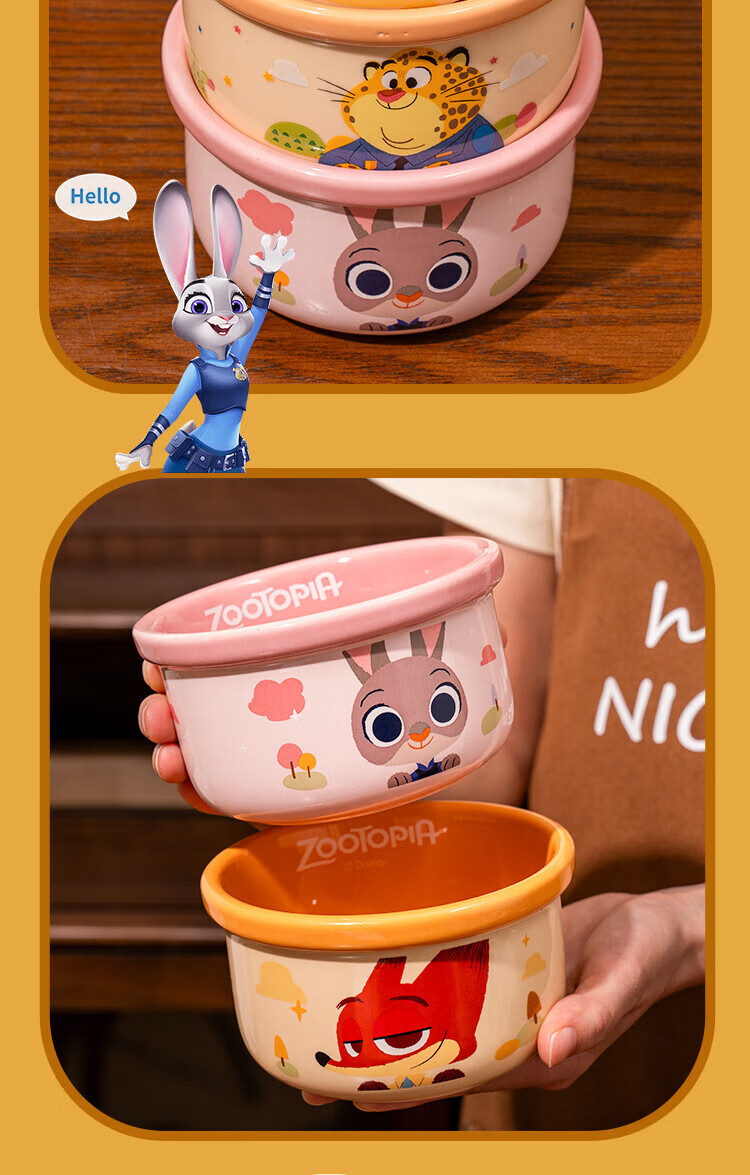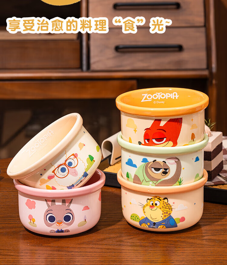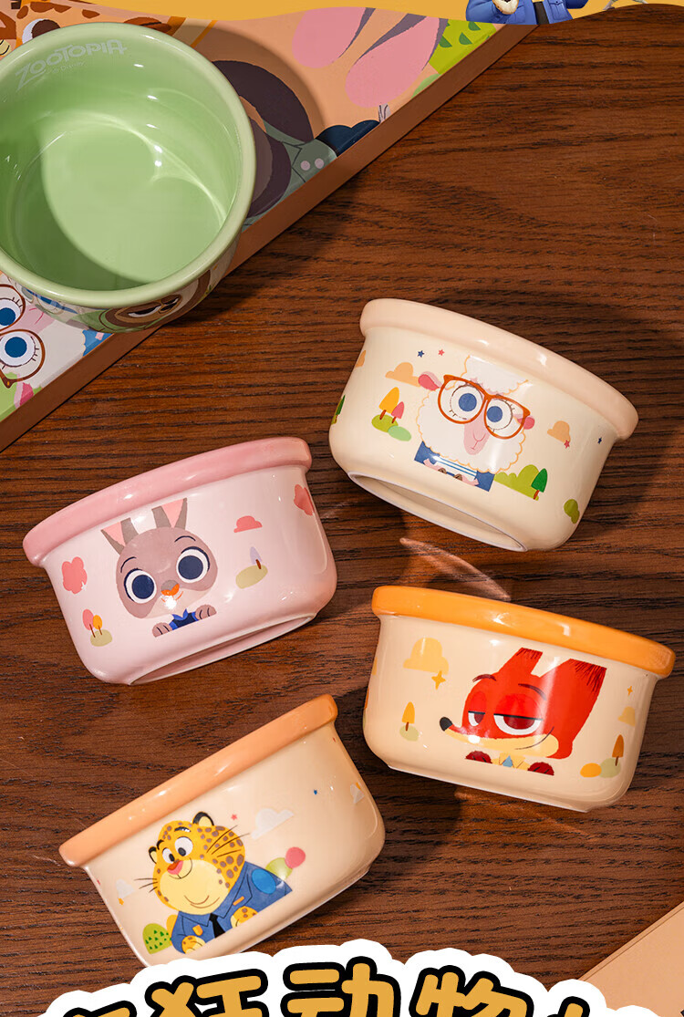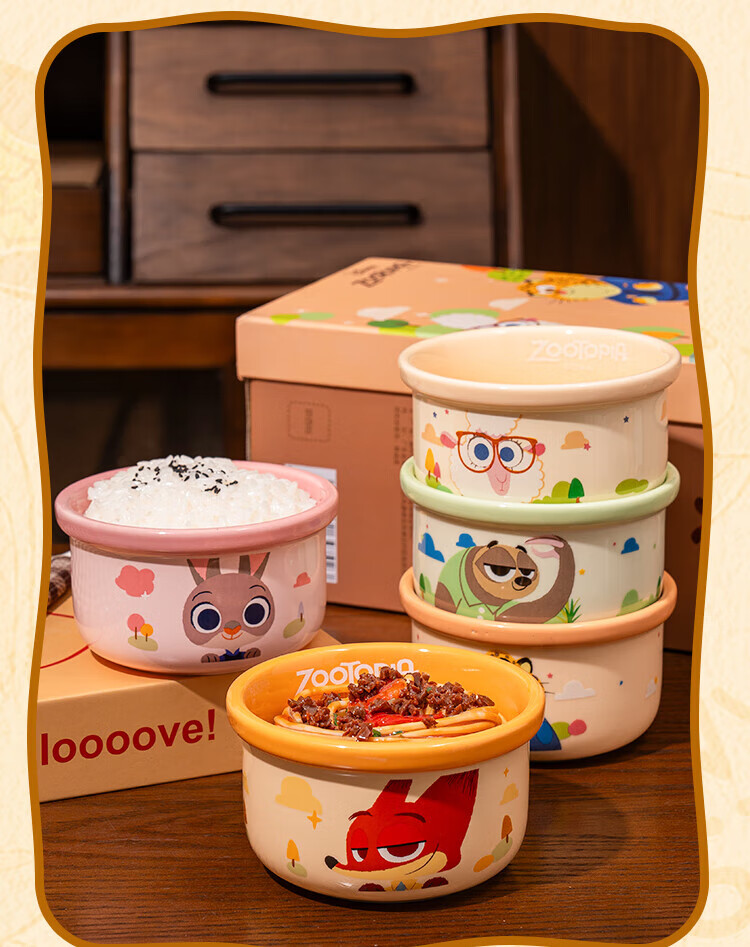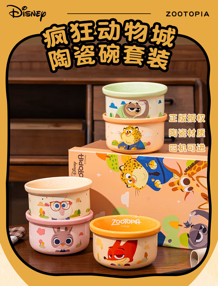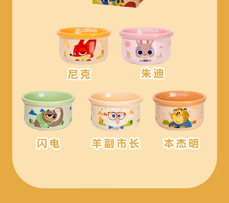 Wangbaifu Disney Zootopia co-branded ceramic rice bowl tableware gift box set wedding housewarming birthday gift Zootopia 5 bowls gift box