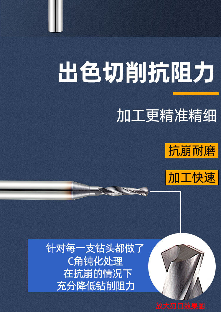 60 degree solid tungsten steel drill bit 4 four handle tungsten steel drill bit alloy coated large handle decimal point small diameter twist drill CNC D1.13*8c*4D*50L