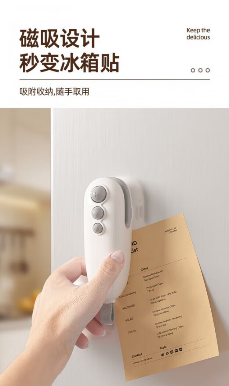 OEMG Japanese style sealing machine new small portable snack artifact household magnetic suction hand pressure plastic bag sealing mini portable sealing machine upgraded version 1cm