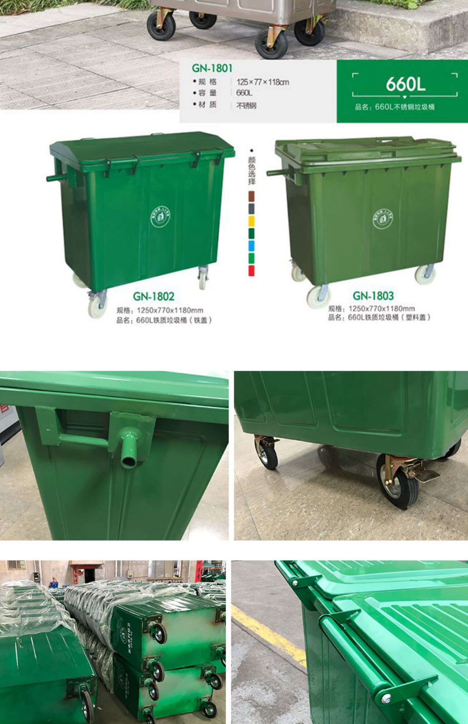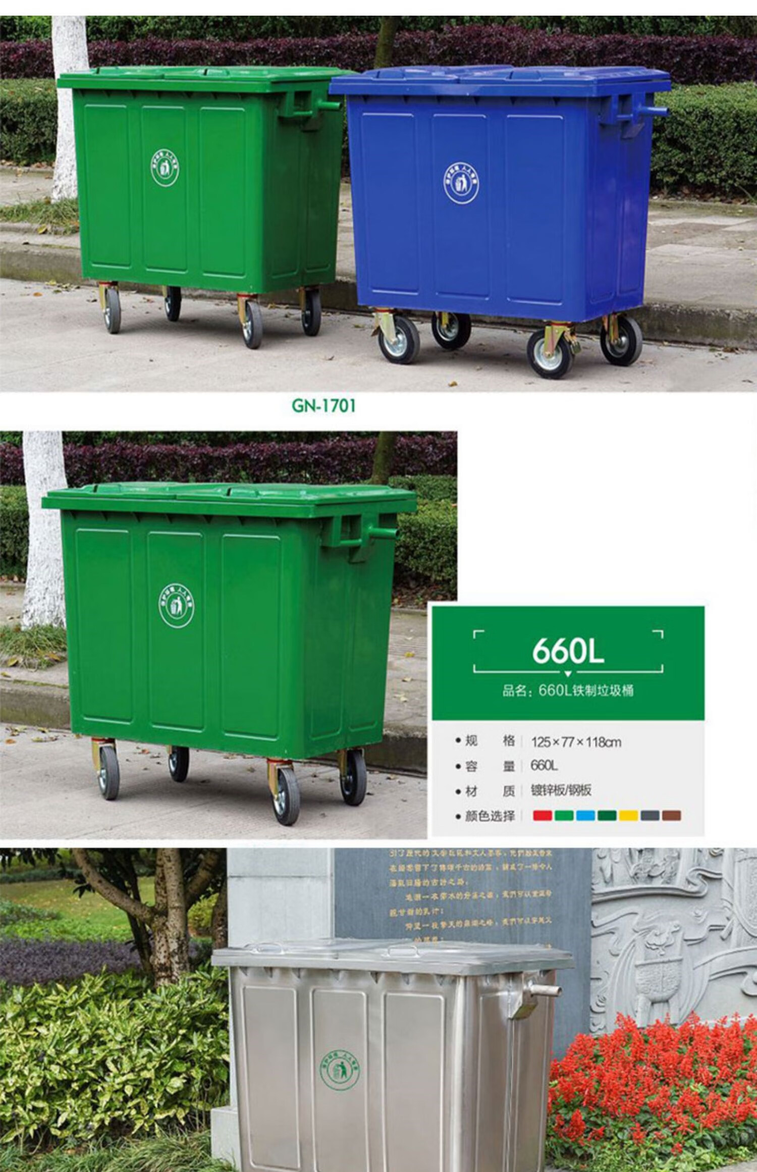 Miaopule sanitation iron 660L stainless steel 1100 liter hand push transfer bin with wheel cover universal wheel large hanging 660L galvanized sheet transfer box with universal wheel