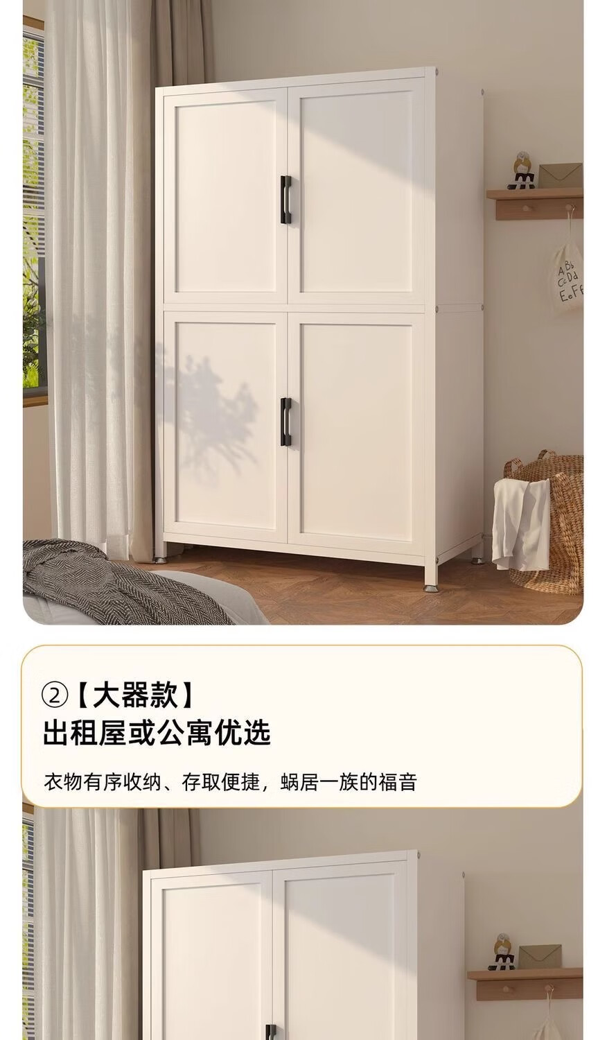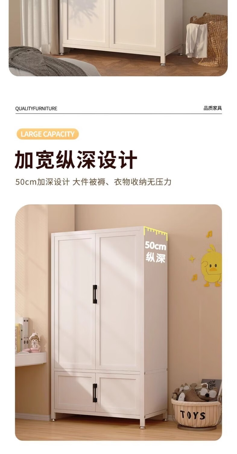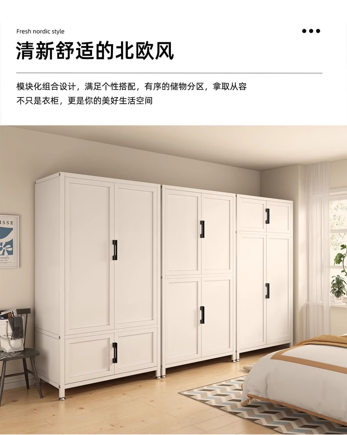 Jiangwei steel wardrobe bedroom home rental house formaldehyde-free simple storage cabinet large wardrobe 2025 new model factory direct sales double hanging clothes 1200*500*1850
