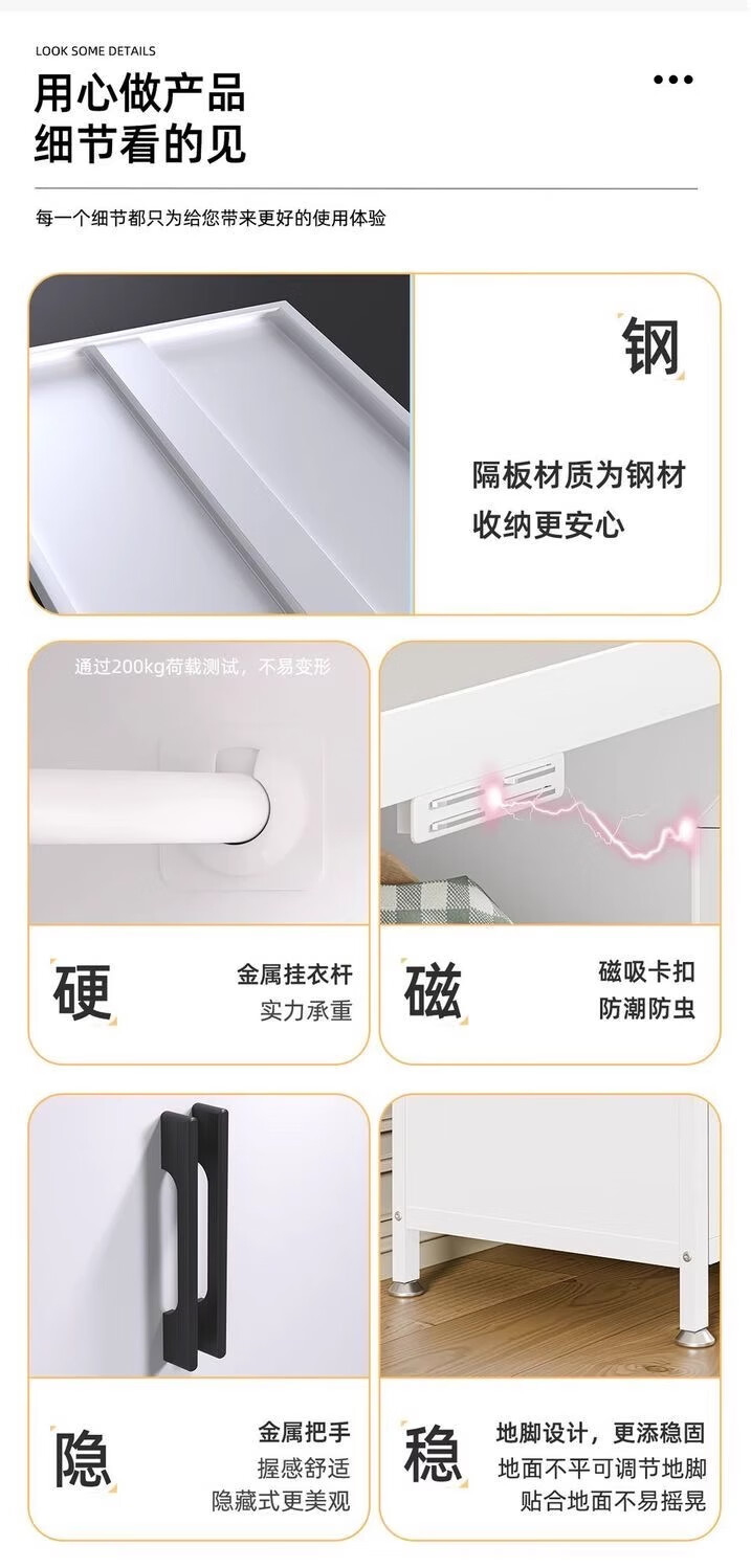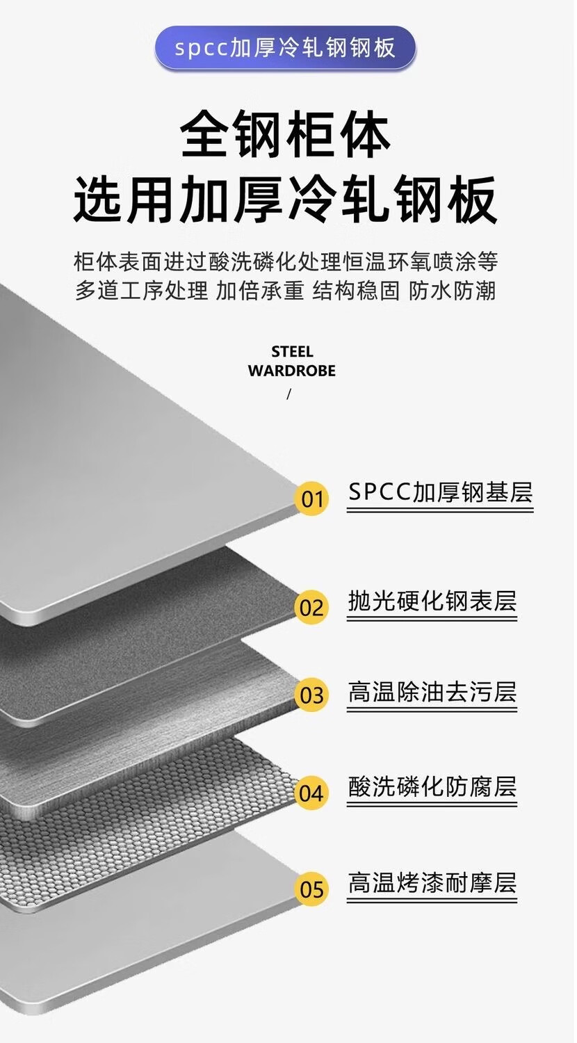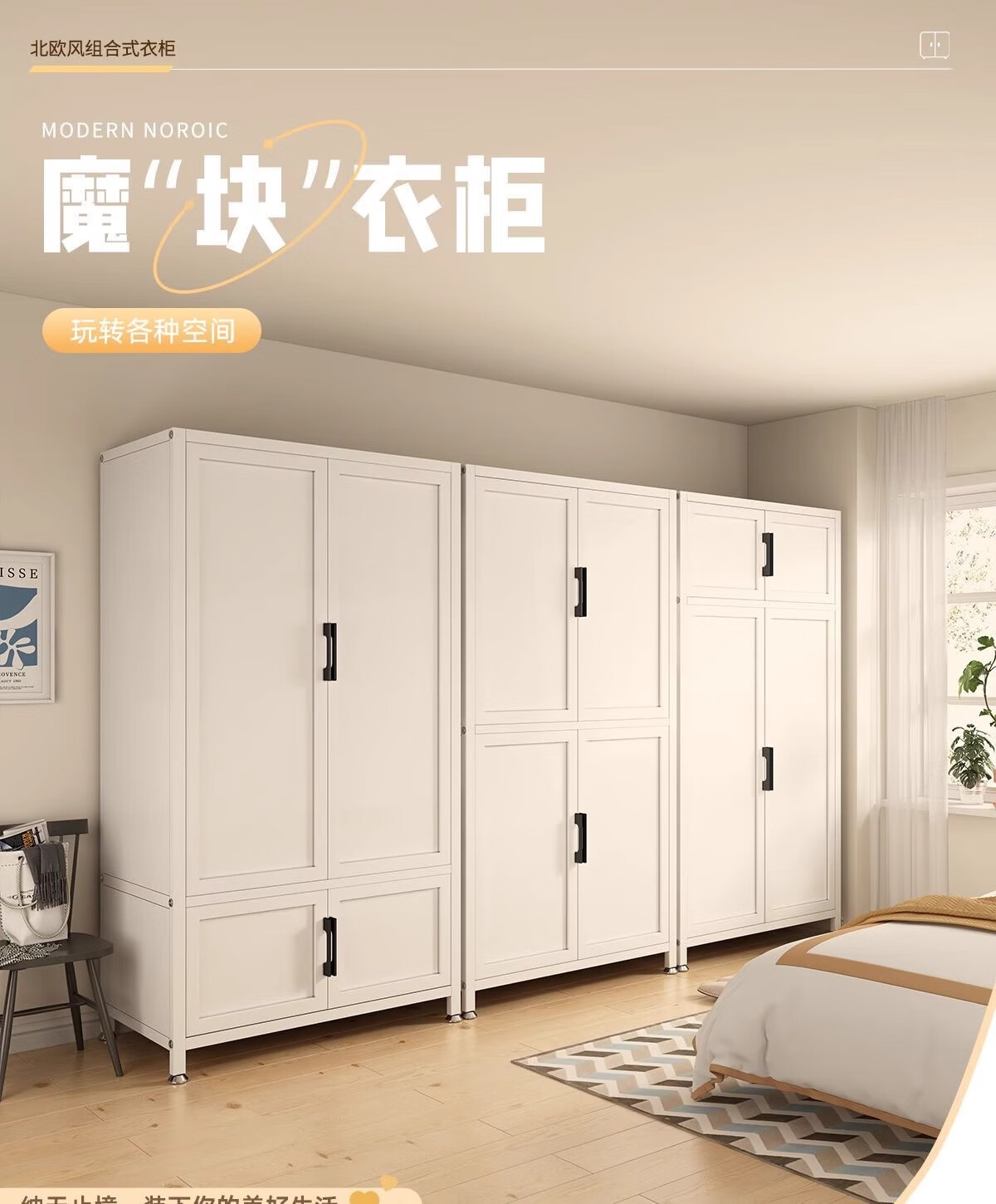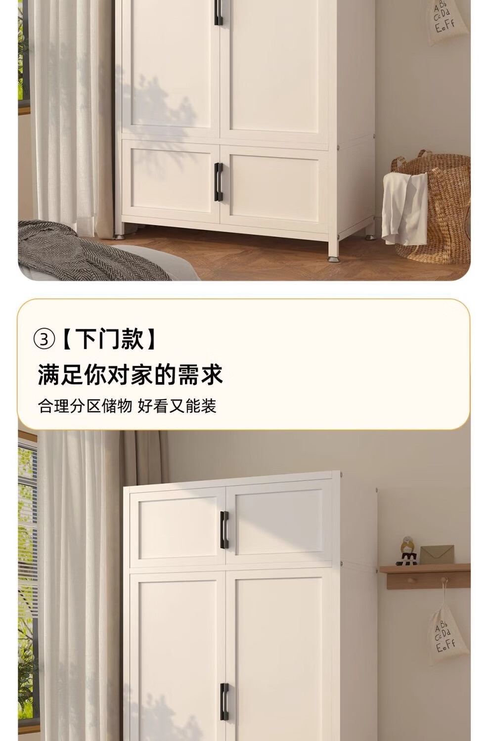 Jiangwei steel wardrobe bedroom home rental house formaldehyde-free simple storage cabinet large wardrobe 2025 new model factory direct sales double hanging clothes 1200*500*1850