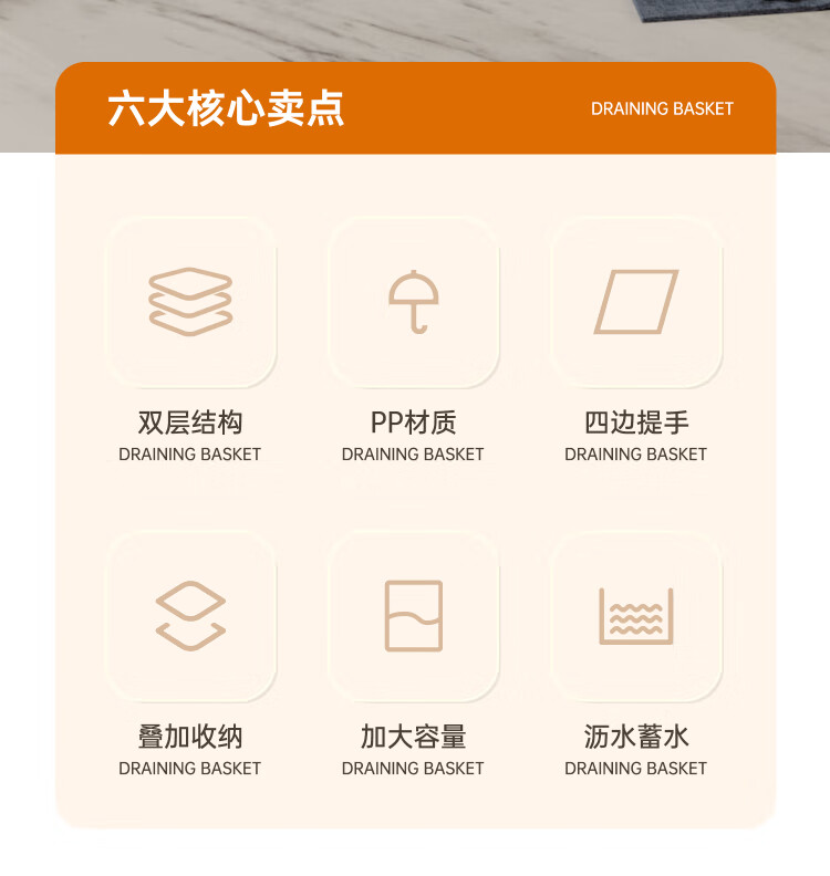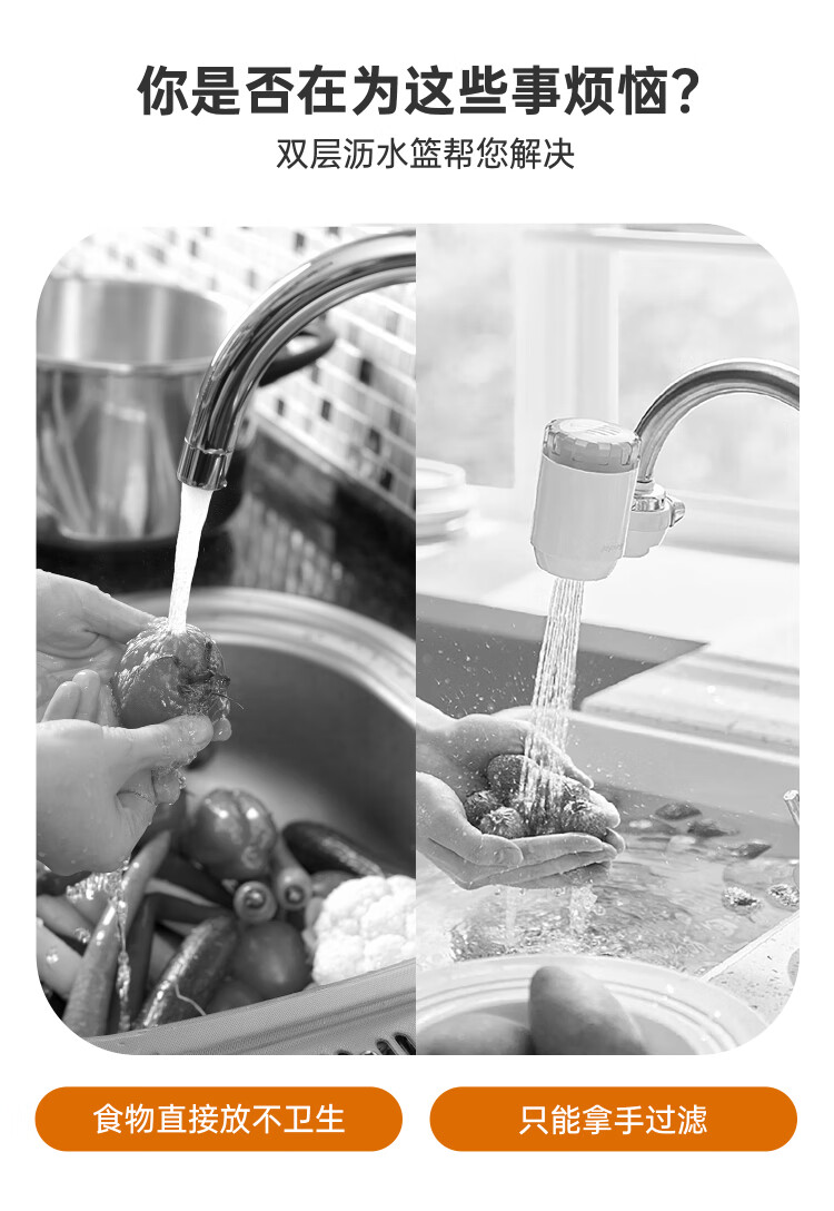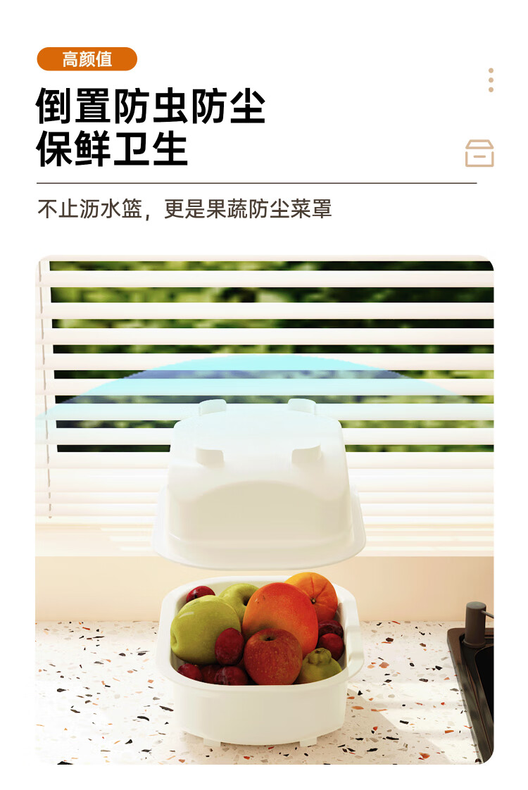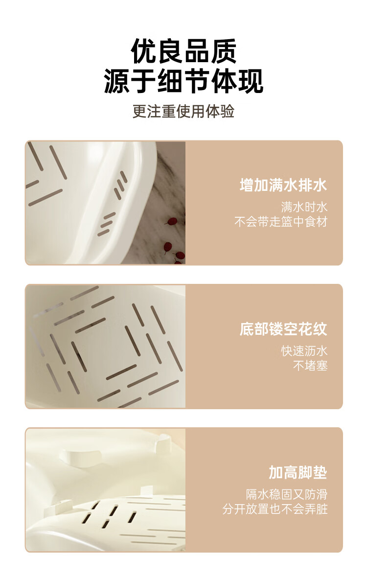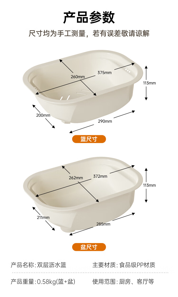 Fahrenheit Double Layer Drain Basket Sink Washing Basket Kitchen Storage Vegetable and Fruit Basket Food Grade Environmentally Friendly Material Thickened and Durable Double Layer Drain Basket - Cream Large Size Set of Two