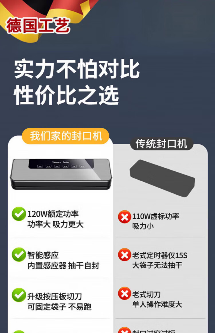 KDISV German vacuum machine sealing machine household food vacuum machine wet and dry vacuum machine sealing all-in-one machine large suction fully automatic bag-free food antibacterial fresh-keeping plastic sealing Ziguang intelligent touch screen vacuum machine 30 vacuum bags