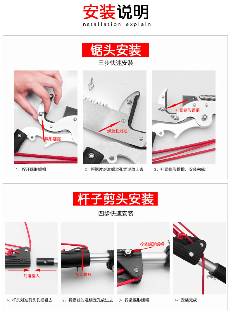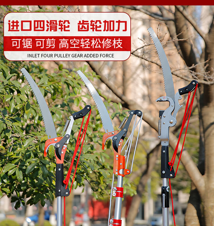 Reliance on high branch shears, high branch saw, high altitude pruning shears, toon pruning, fruit tree pruning, three pulleys, labor-saving scissor head, band saw, shearing rope without