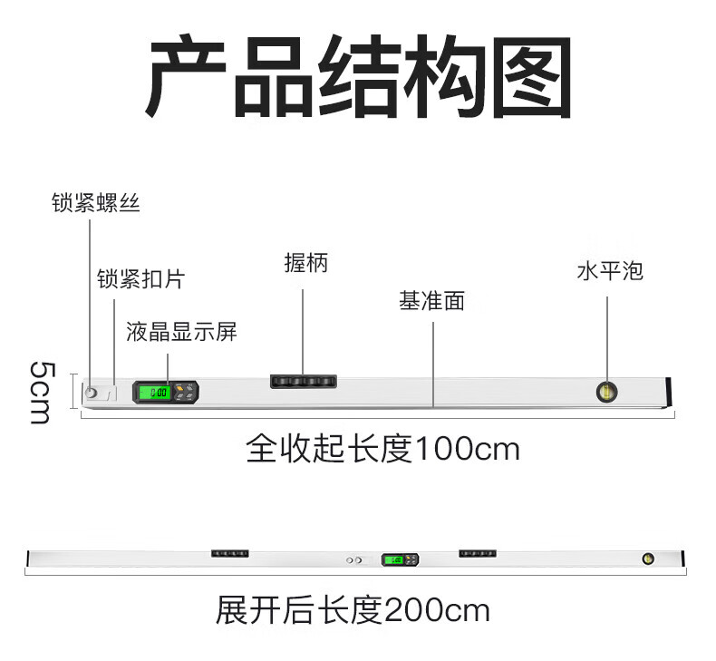 Kaosen Japanese high-precision electronic digital display ruler 2-meter folding magnetic level detection ruler aluminum alloy balancer