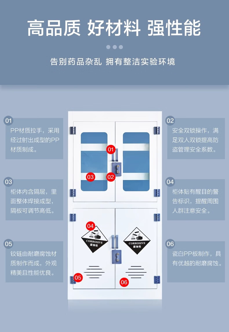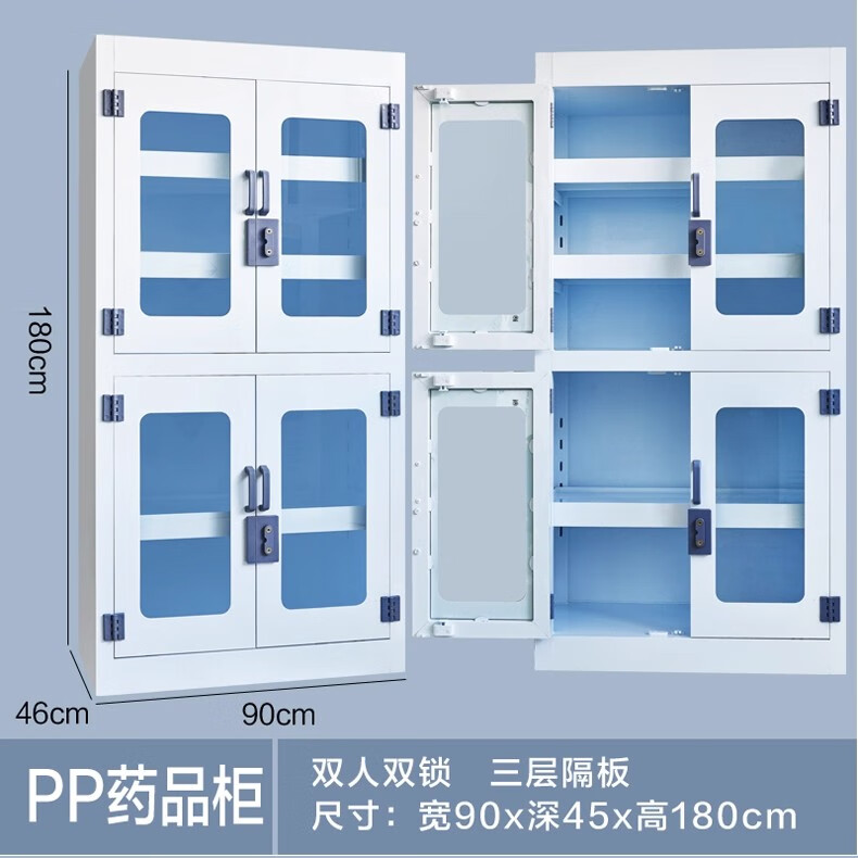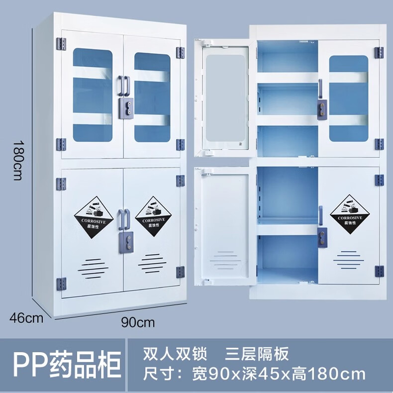 Guanyu PP cabinet acid-base cabinet chemical reagent cabinet dangerous goods storage cabinet school research room laboratory medicine cabinet double lock anti-corrosion utensil cabinet PP medicine cabinet four doors upper glass lower solid door