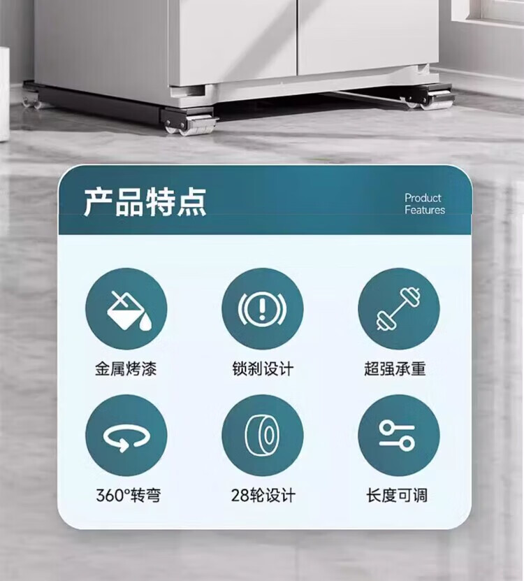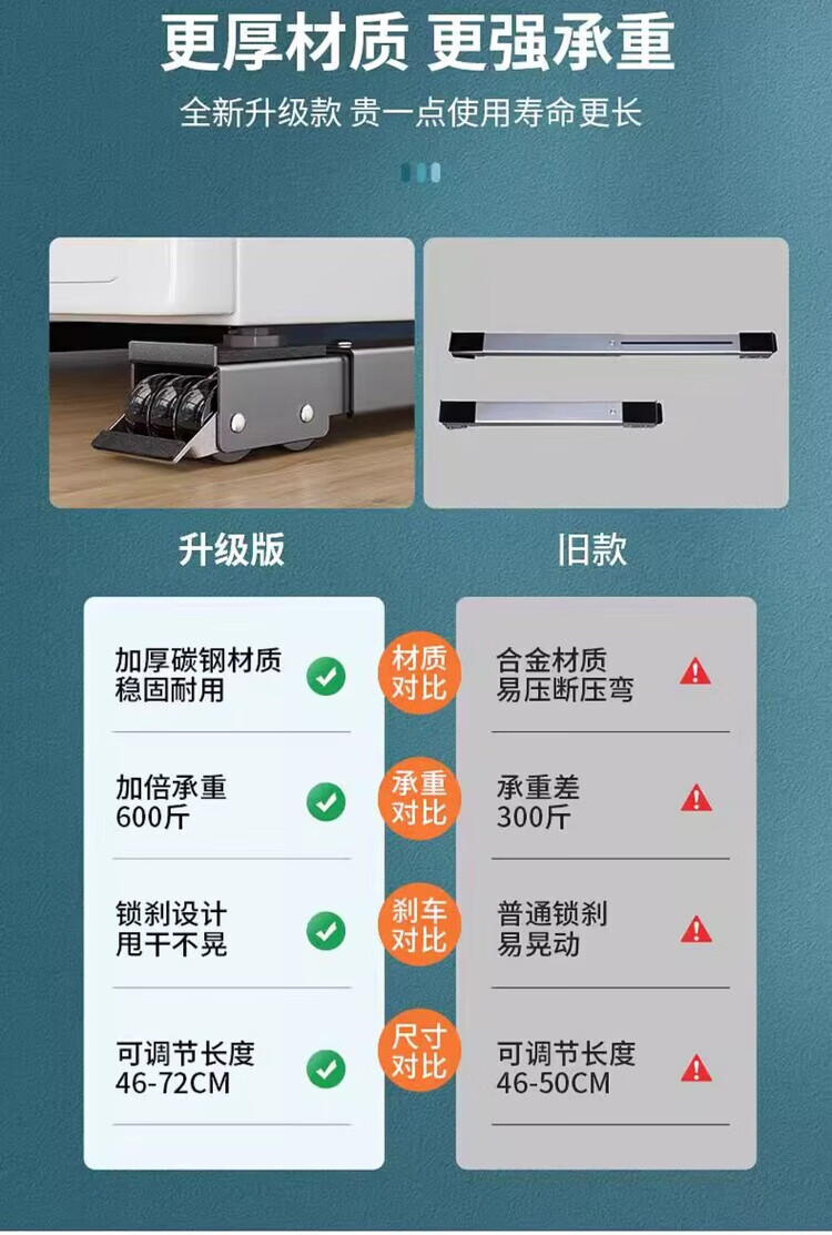 Jingyouyu German washing machine base shelf universal pulley refrigerator storage universal roller removable shock pad universal silver gray 8-wheel retractable brake design