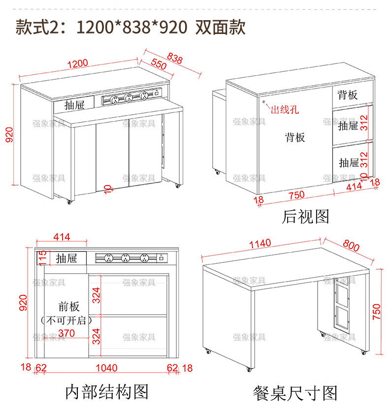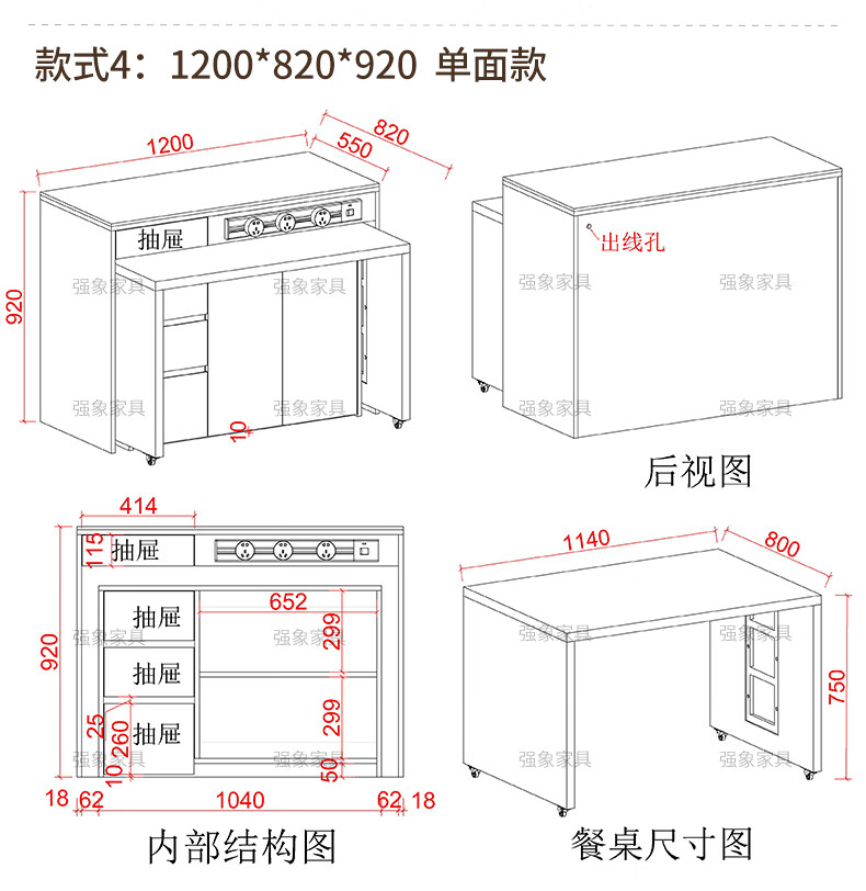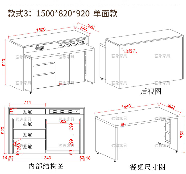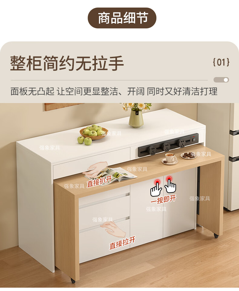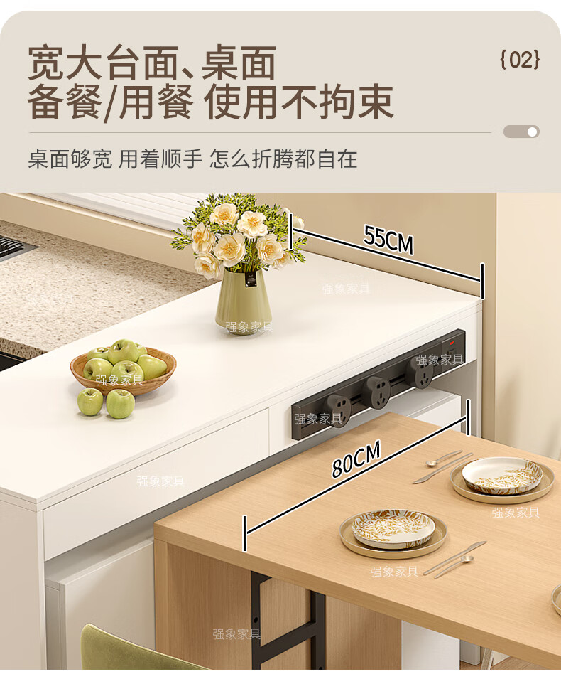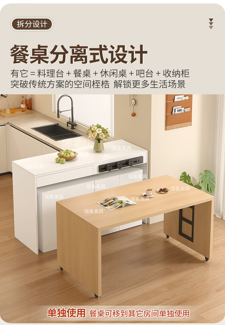 Qiangxiang new sideboard dining table integrated bar home detachable split kitchen island mobile dining table E80 style 3 1500*820*920 (single-sided model)