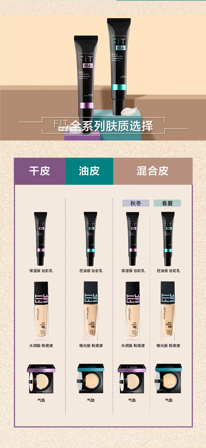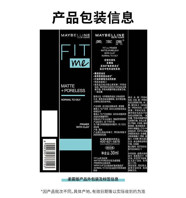 Maybelline (MAYBELLINE) FITme customized pre-makeup creamy skin oil control microdermabrasion invisible pore isolation concealer not easy to stick to powder holiday gift pre-makeup soft mist version 30ML