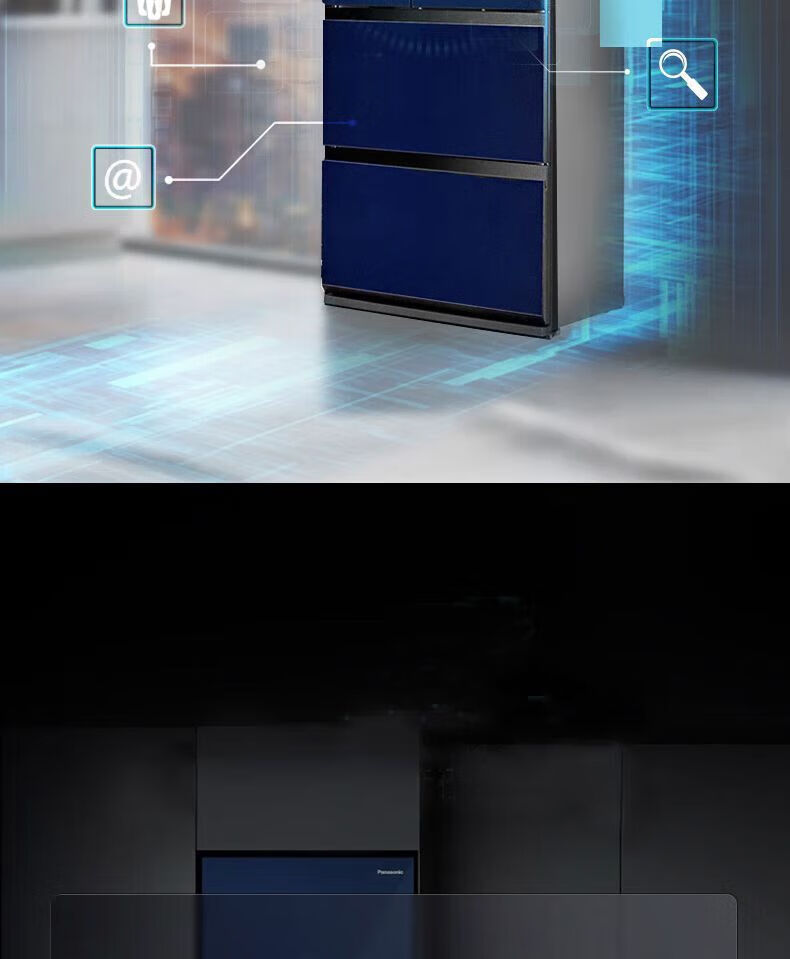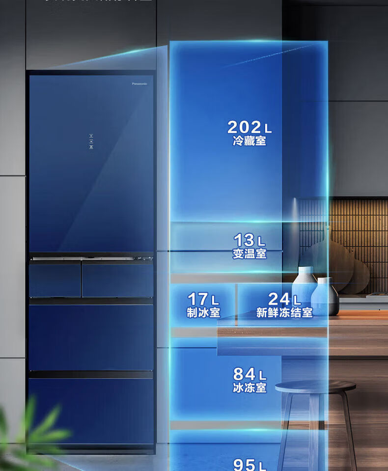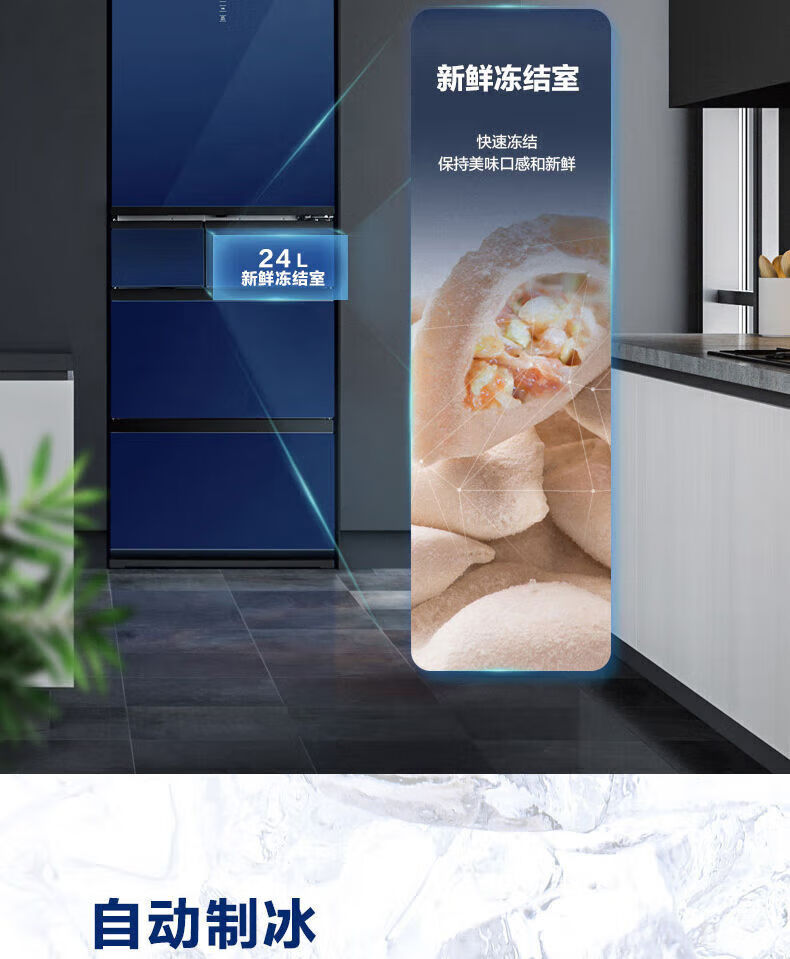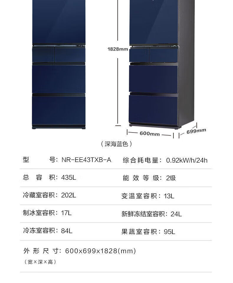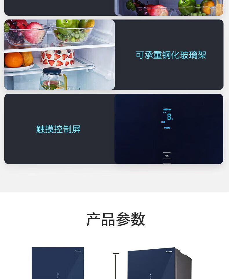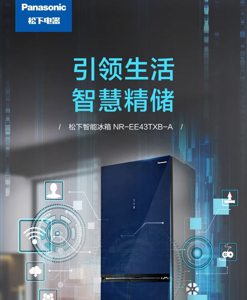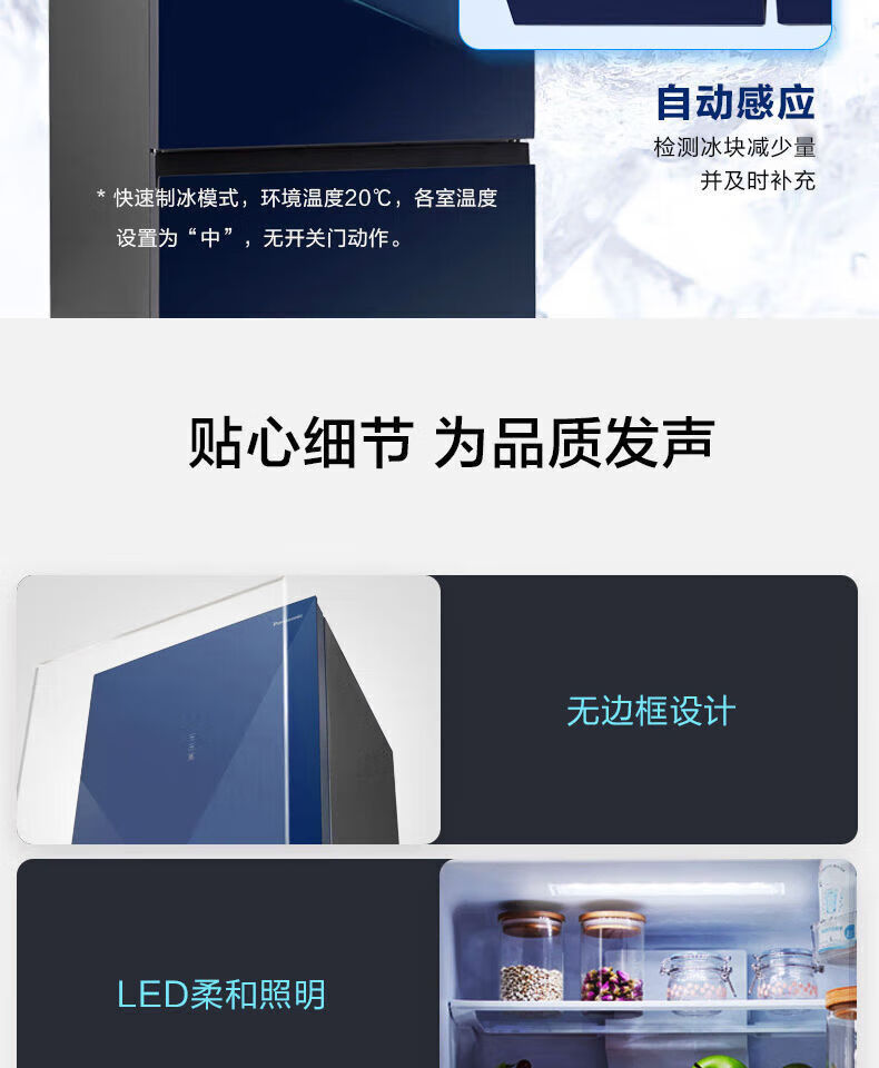 Panasonic 435L household refrigerator frost-free air-cooled frequency conversion automatic ice-making glass panel 435L household refrigerator frost-free