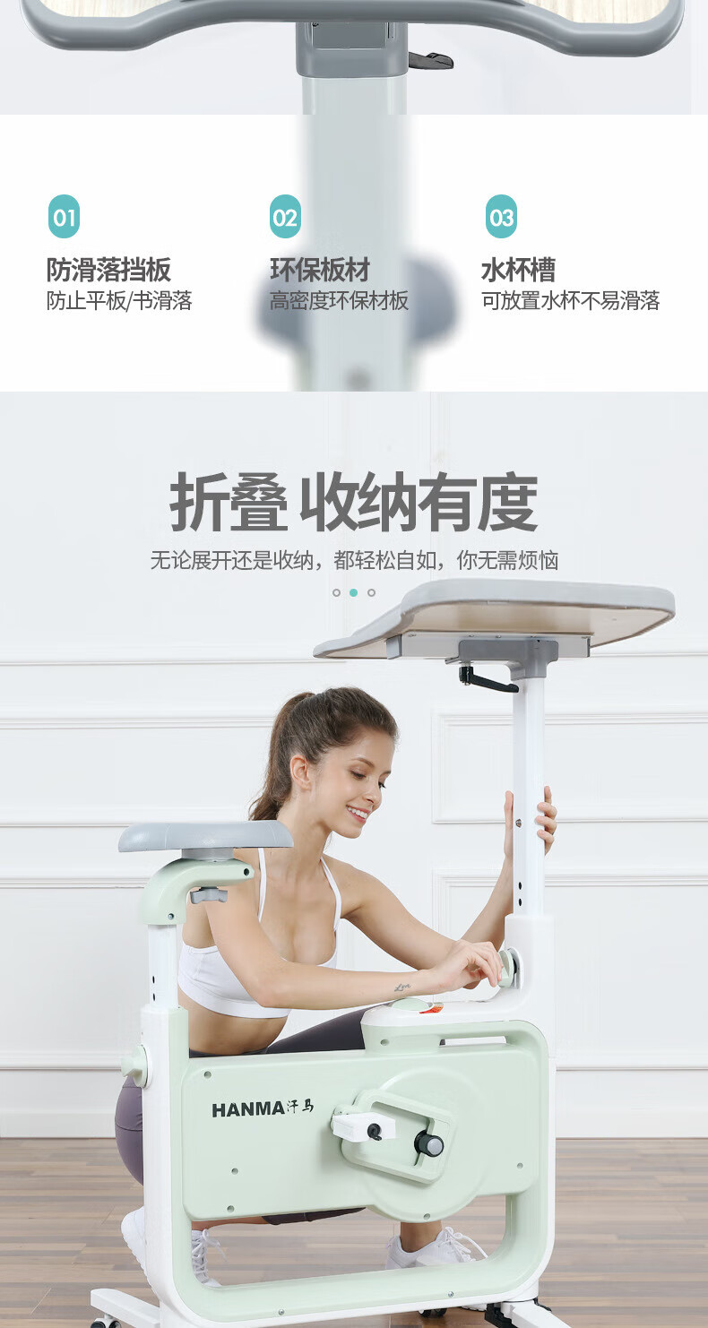 He Jiagong Khanma Spinning Bike Home Magnetic Silent Exercise Bike Home Office Sports Weight Loss Small Folding Self-made White (with Table Board