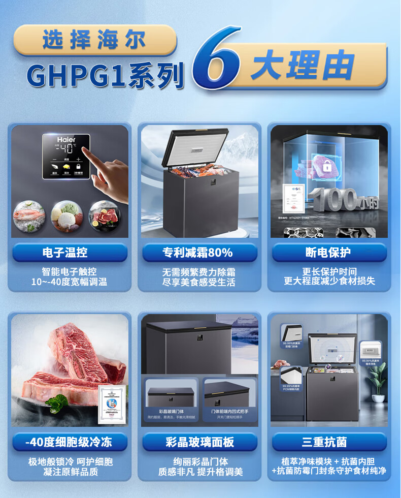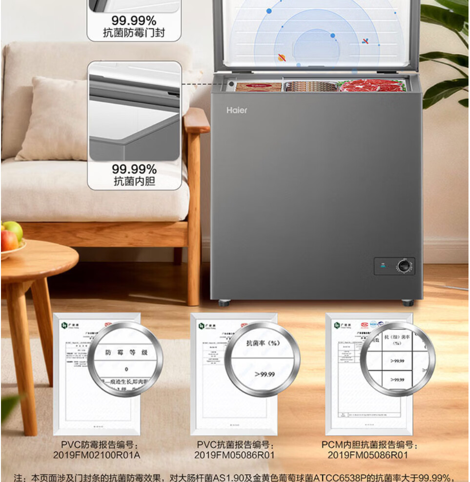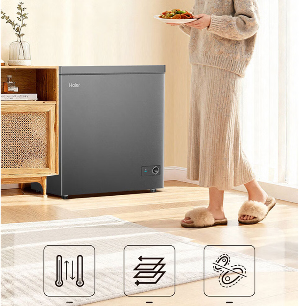 Haier freezer household small refrigeration and freezing dual-purpose fresh-keeping freezer 100/200 liters or more large capacity frost-reducing small freezer one-click conversion trade-in Xingyun Silver -35 cryogenic upgrade frost-reducing 228L