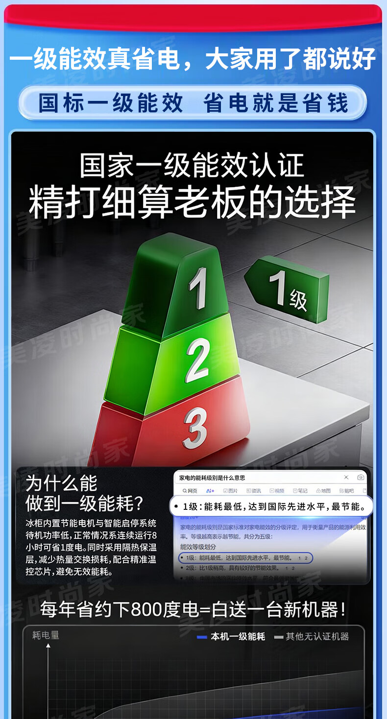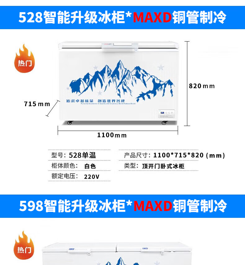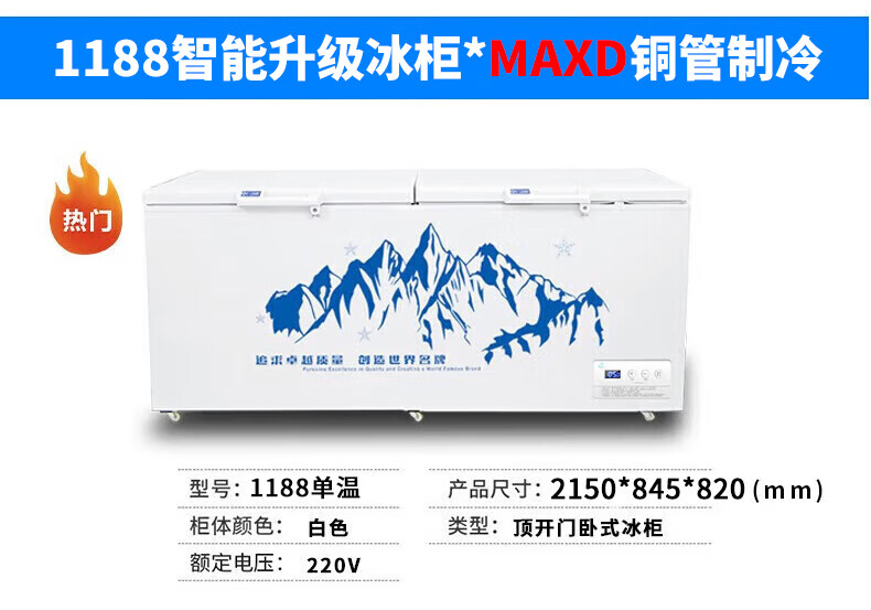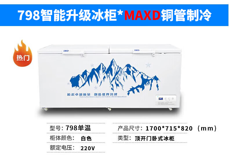 Meiling Fashion Home has subsidized 20% of the freezer, commercial household freezer, horizontal large-capacity full freezer flagship display cabinet, 728 single temperature | MAXD copper tube | first-level energy efficiency | intelligent digital display, upgraded thickened foaming, high-efficiency frost reduction model | temperature -35~+5