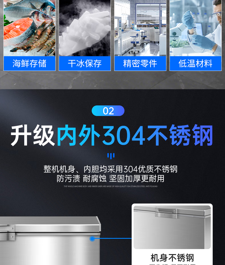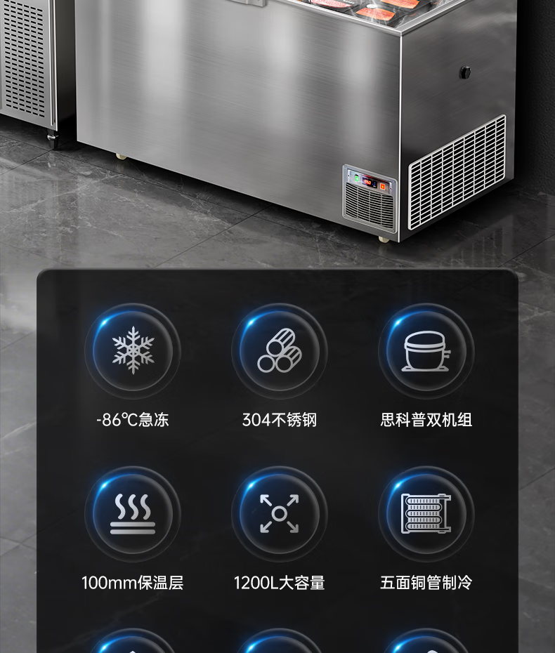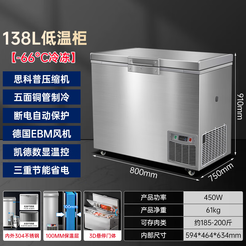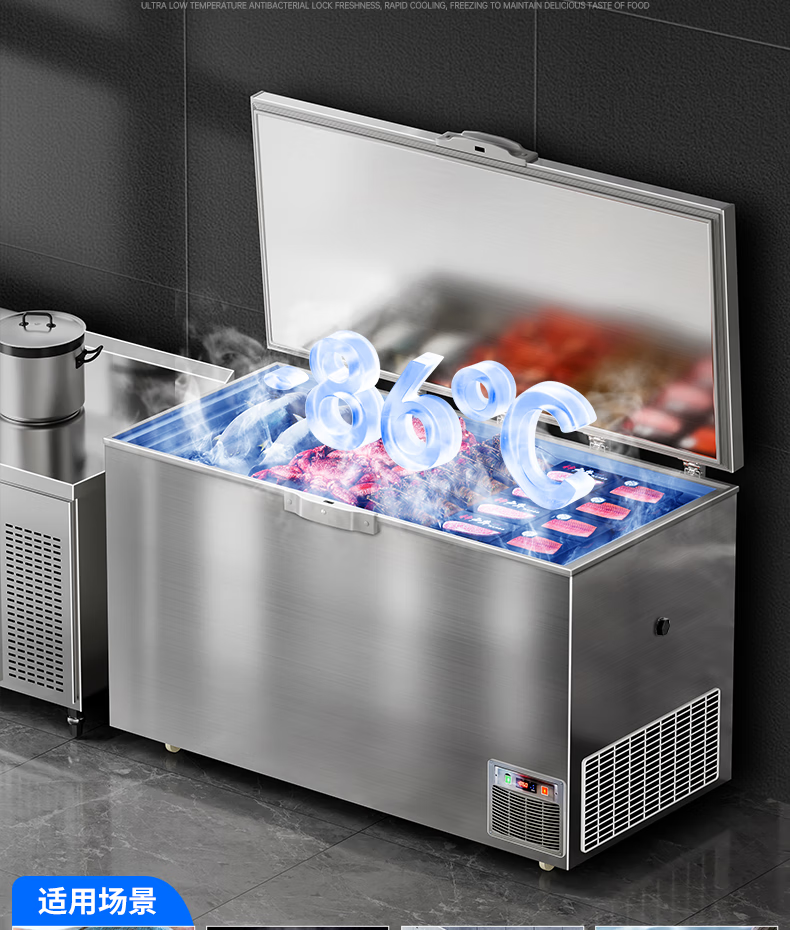 Master Neng ultra-low temperature freezer commercial minus 60 degrees -40-50 minus 80 degrees refrigerator household large capacity tuna seafood dry ice medical laboratory scientific research horizontal deep cooling quick freezer 480L 1.5 meters wide / -66 light luxury model